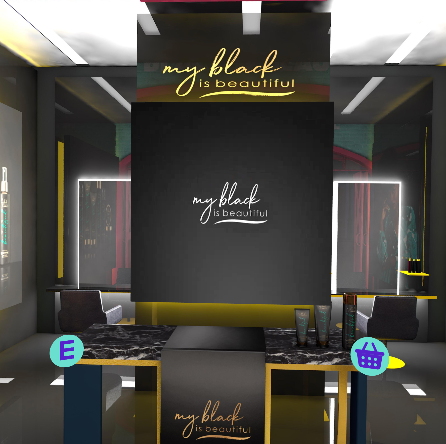 Once on the site, use the arrows to check out each vendor in the marketplace and click the “E” icon to shop!
