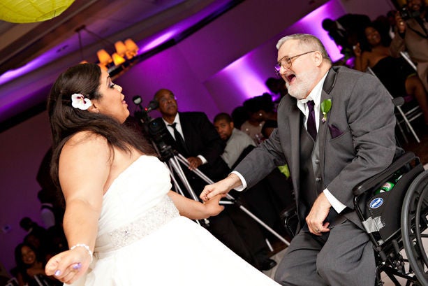 Crystal enjoys a special moment on the dance floor with her father at her fabulous reception.