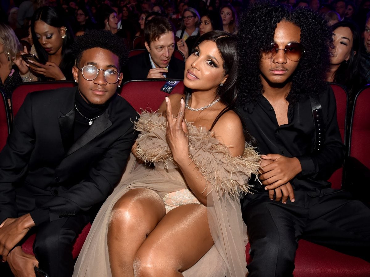 Braxton and her sons looking stylish, at the 2019 American Music Awards at Microsoft Theater on November 24, 2019 in Los Angeles, California.