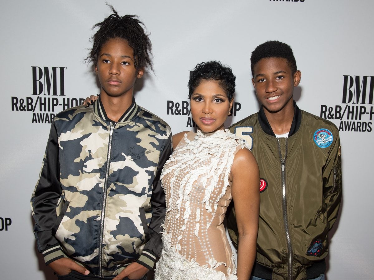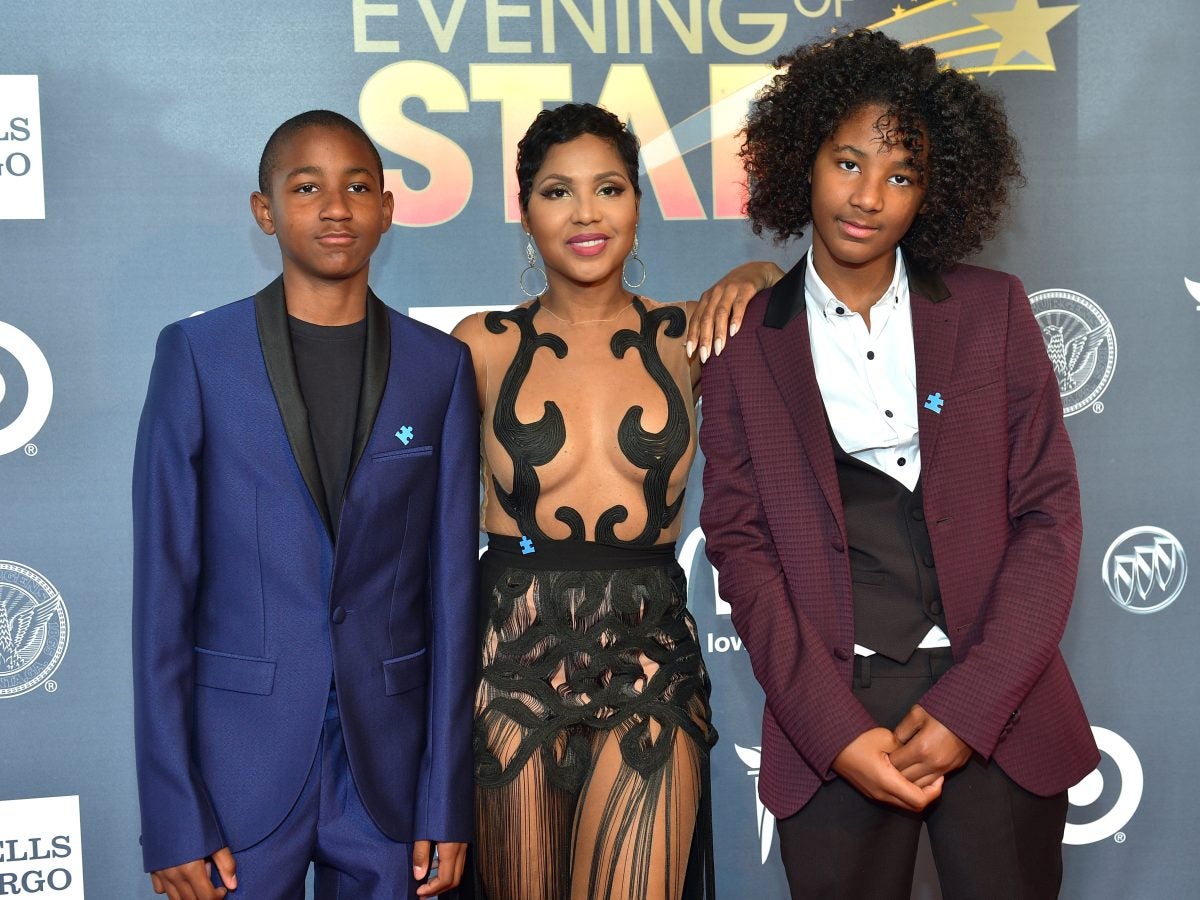 BEVERLY HILLS, CA – NOVEMBER 17: Singer Toni Braxton poses with sons Diezel Ky Braxton-Lewis (L) and Denim Cole Braxton-Lewis at the 24th Annual NAACP Theatre Awards at Saban Theatre on November 17, 2014 in Beverly Hills, California. (Photo by Michael Tullberg/Getty Images)