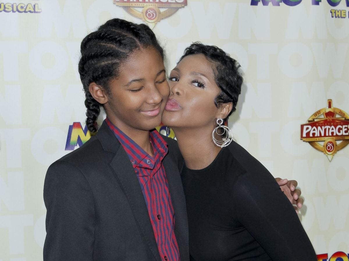 HOLLYWOOD, CA – APRIL 30: Toni Braxton (R) and her son Diezel Ky Braxton-Lewis (L) attend ‘Motown The Musical’ opening night at the Pantages Theatre on April 30, 2015 in Hollywood, California. (Photo by Tibrina Hobson/FilmMagic)