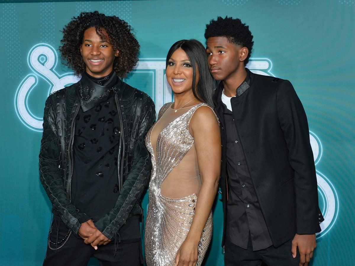 BEVERLY HILLS, CALIFORNIA – SEPTEMBER 22: Toni Braxton with her two sons (L-R), Denim and Diezel Braxton-Lewis attend the Royal Order Of Constantine Hosts A Royal Evening In Beverly Hills at Waldorf Astoria Beverly Hills on September 22, 2018 in Beverly Hills, California. (Photo by Unique Nicole/Getty Images)