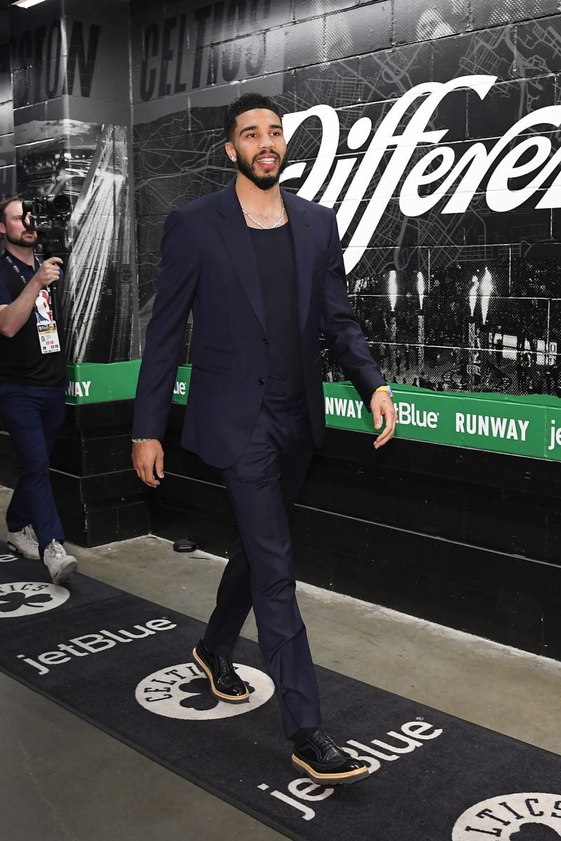 In case you’ve been living under a rock, the 2024 NBA Finals season is officially here. For Game 1, the Boston Celtics and Dallas Mavericks battled it out. The Celtics walked away with a win–but there were some clear winners from this team and the Mavs in matters of style. Jaylen Brown arrived in an all-black outfit that felt like a stylish omen. And Jayson Tatum, another fashion-forward player, showed up donning a tailored navy suit.