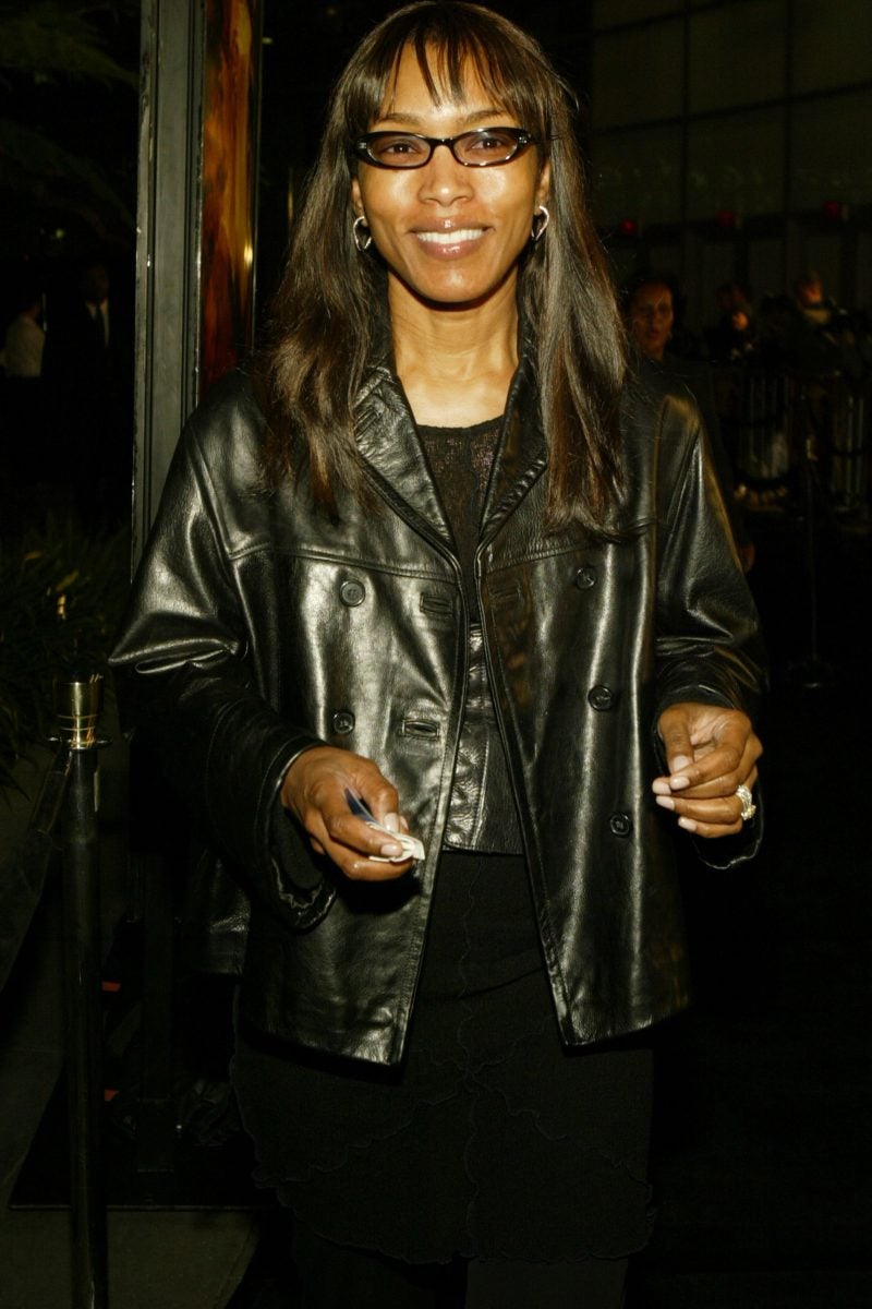 At the 33rd NAACP Image Awards back in 2001, she was becoming more accomplished in her early career. When she won, she wore an office-core inspired outfit, featuring a long black coat cinched at the waist, low rise wide-legged black pants, and a crisp white button-down top. At an event for FX in 2017, she wore a peplum strapless top paired with structured black pants and a textured leather jacket with fur-trimmed lapels. In 2003, at the world premiere for Tupac Resurrection, she made a lasting impression with her black buttery leather jacket, sheer lace top, flowy black pants, and lightly tinted black framed sunglasses.