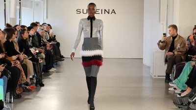 Minutes before his fall 2023 show opened, designer Omar Salam sat in the photographer’s pit. Dressed simply in a navy sweater, dark pants, and a white button-up, he was perched on the edge of an apple crate, his phone held at his knee as he watched and recorded the final rehearsal for the latest collection from his brand Sukeina. A smile crept onto his face as Coco Rocha appeared at the back of the runway. With old-school, dramatic swirls and flourishes, she swanned up the catwalk, tossing the long black train of her skirt from side to side before striking a few dynamic poses. About 20 minutes later, Salam’s smile was replaced by gasps, his phone multiplied multiple times over as the audience took in the sight of Rocha, a longtime collaborator of the 11-year-old brand, adding her own bit of verve to the procession of models. It was a surprising end to a solid outing from the designer, selected as a CFDA/Vogue Fashion Fund finalist in 2022.