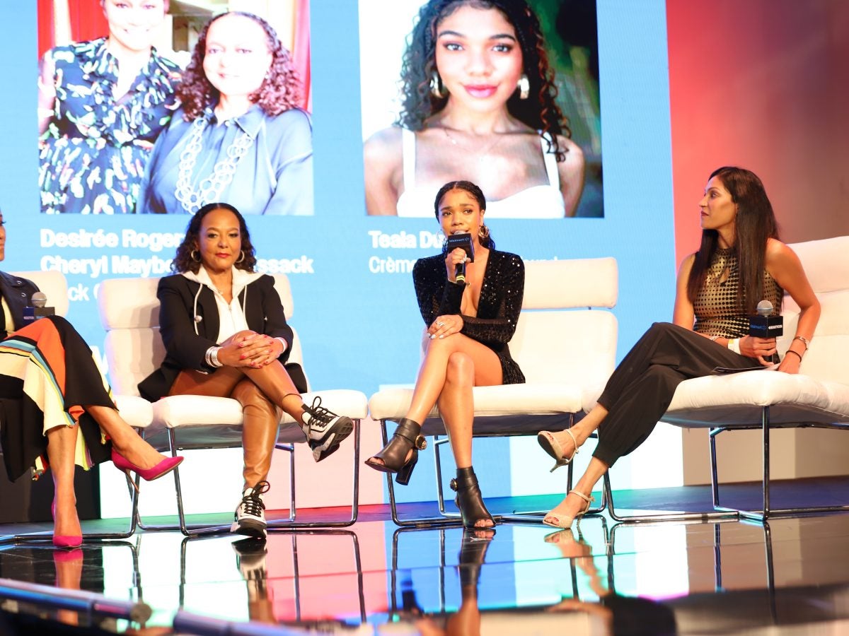 Highlights included the inspiring “Embracing Beauty After Motherhood” panel moderated by longtime beauty creator, Raye Boyce. Later on was a discussion on self-expression– moderated by ESSENCE’s Senior Beauty Editor, Akili King– with Saucy Santana, Evan Mock and Jony Sios. Then, musical artist Rico Nasty shared tips on creating a glam-punk beauty look.