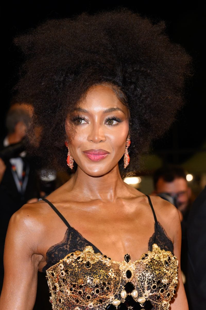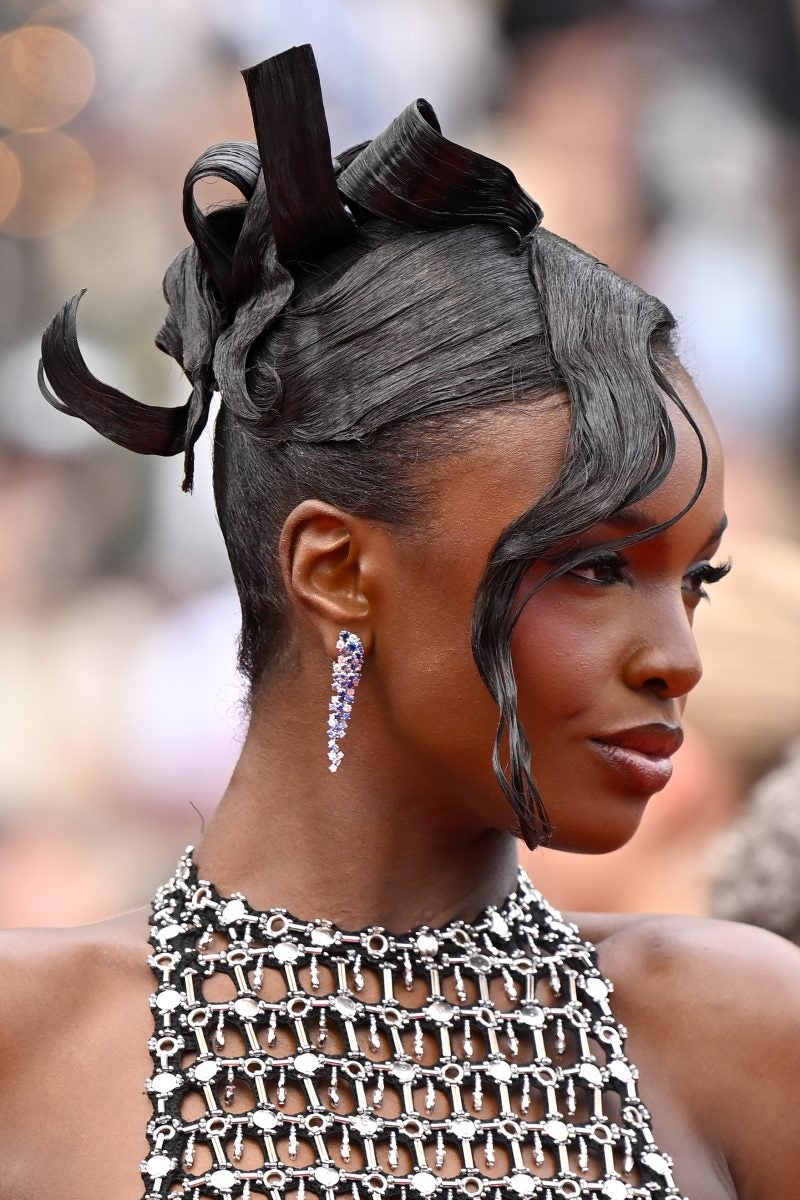 Serving not just looks, but on the festival’s jury this year, Halle Berry arrived in a textured ombre bob and barely-there flush to watch The Phoenician Scheme’sdebut. Just weeks after revealing their third pregnancy at the Met Gala, Rihanna and A$AP Rocky made an appearance for the film Highest 2 Lowest in a banged bun and all gold fronts respectively. Meanwhile, Naomi Campbell celebrated her 55th birthday at Cannes, presenting a bouffant ‘fro paired with equally voluminous lashes for Fuori.