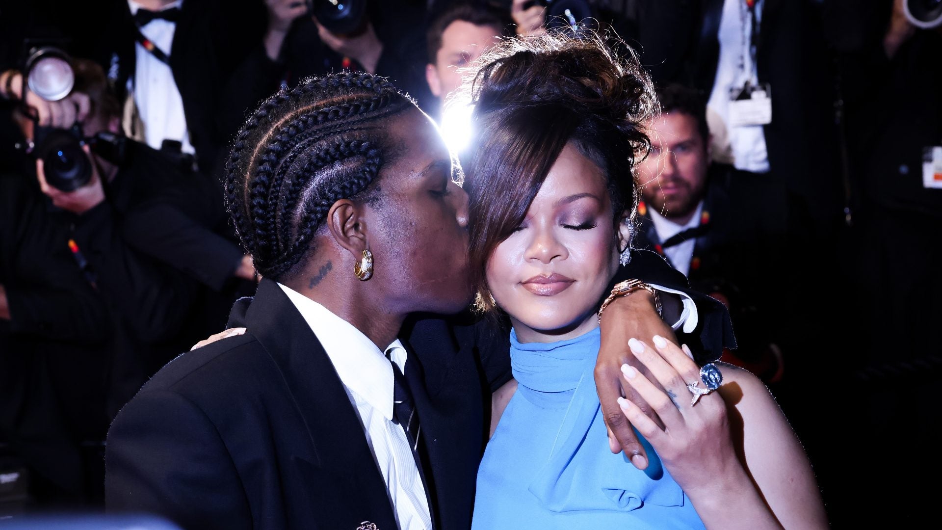 CANNES, FRANCE – MAY 19: Rihanna and A$AP Rocky attend the “Highest 2 Lowest” red carpet at the 78th annual Cannes Film Festival at Palais des Festivals on May 19, 2025 in Cannes, France. (Photo by Samir Hussein/WireImage)