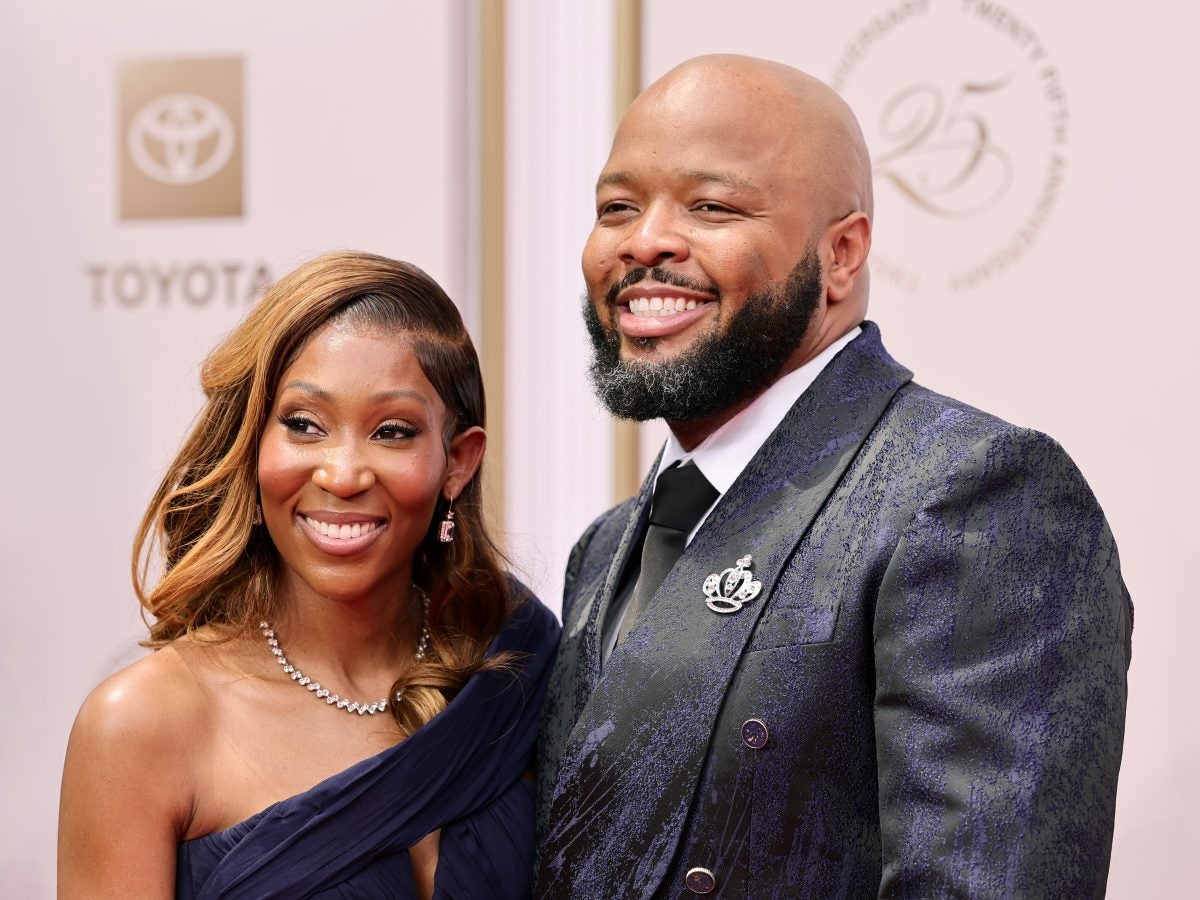 US singer songwriter Jordin Sparks and her husband model Dana Isaiah attend the BET awards 2025 at the Peacock Theatre in Los Angeles on June 9, 2025. (Photo by Michael Tran / AFP) (Photo by MICHAEL TRAN/AFP via Getty Images)