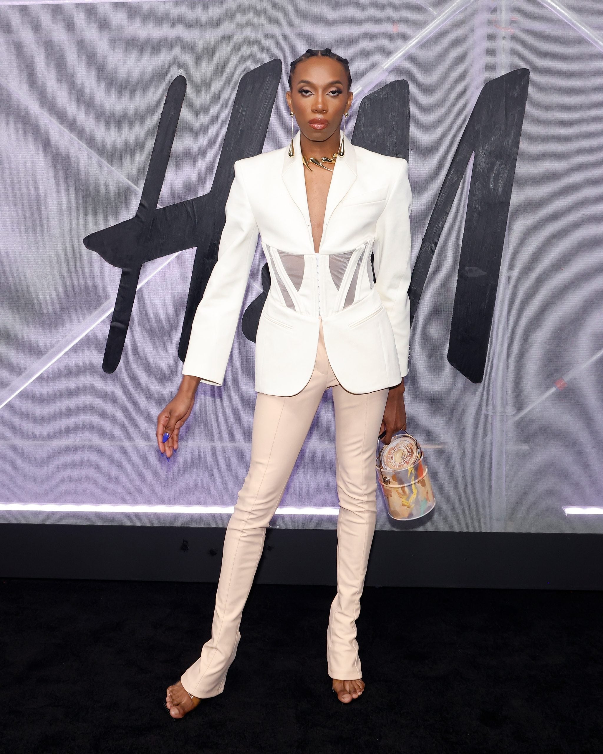 A guest arrives for the Mugler H&M Global Launch Event on April 19, 2023, in New York City. – H&M announced in March 2023 its Mugler collaborative collection, slated to launch in stores and online on May 11, 2023. (Photo by ANGELA WEISS / AFP) (Photo by ANGELA WEISS/AFP via Getty Images)