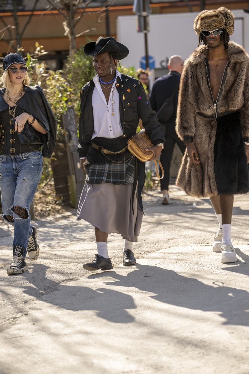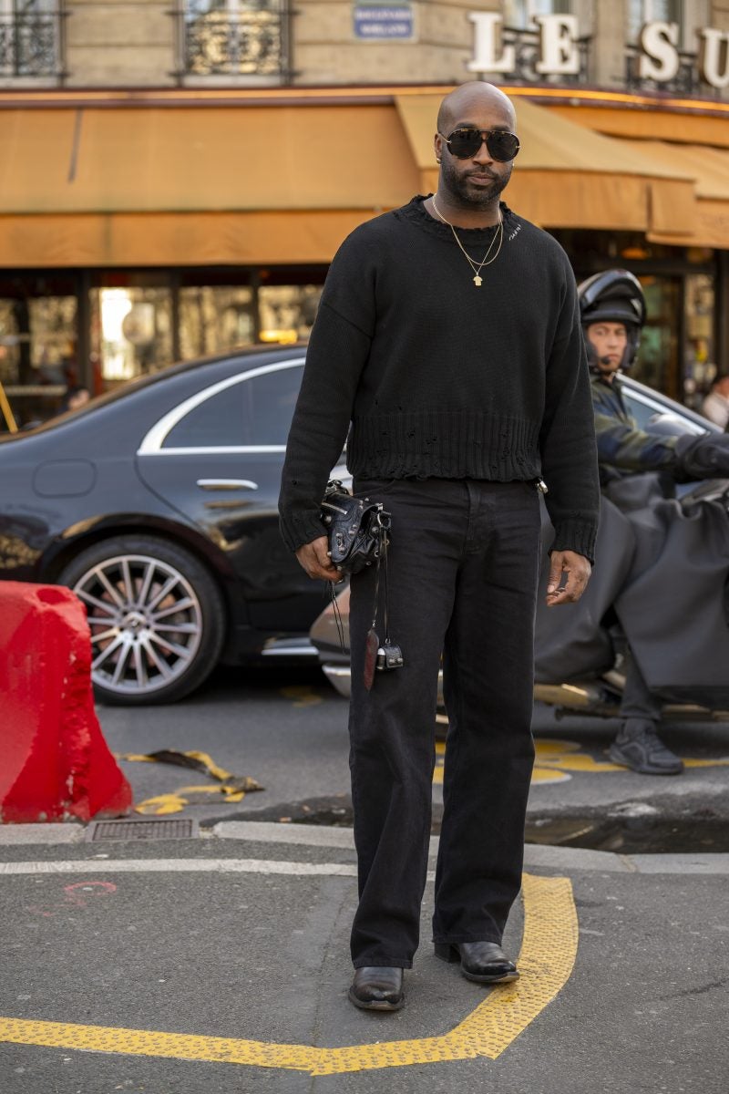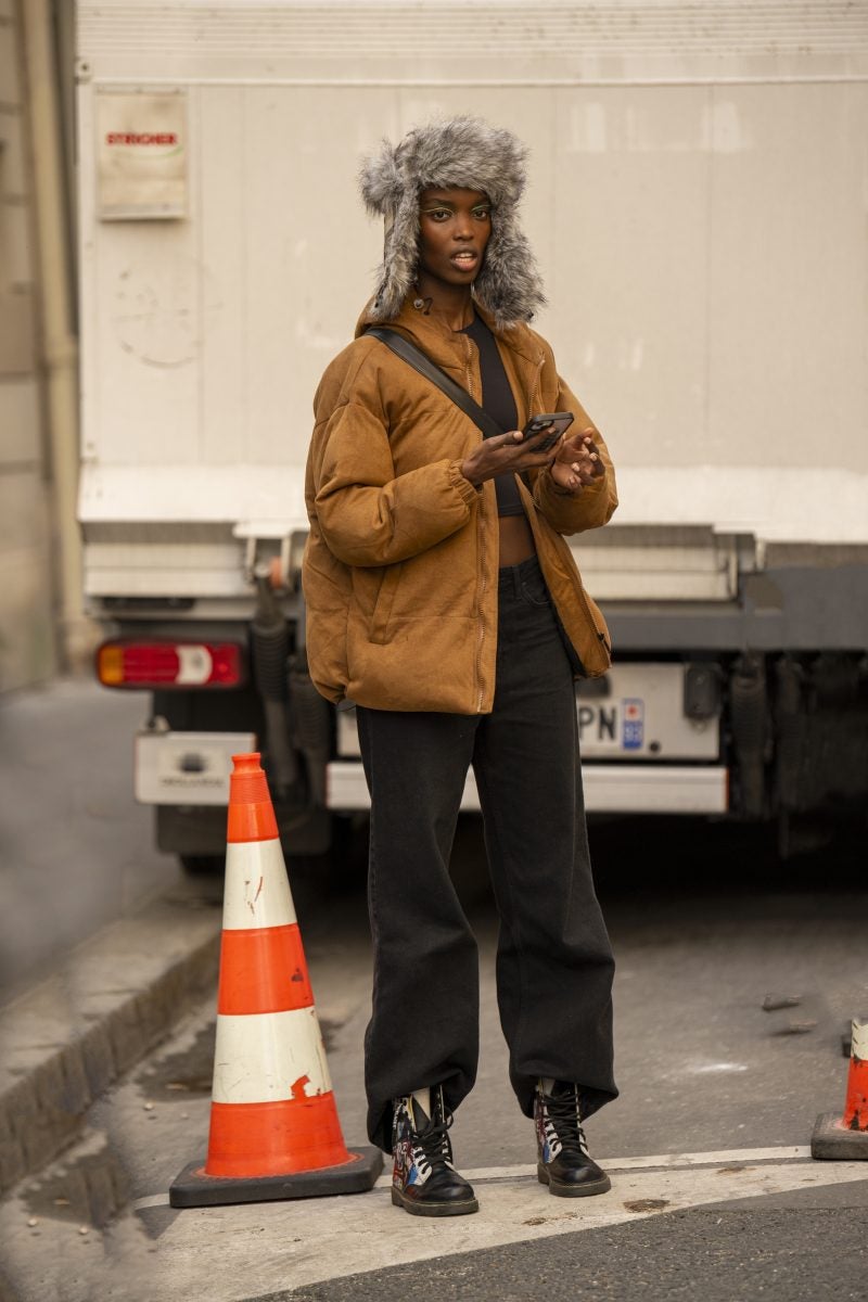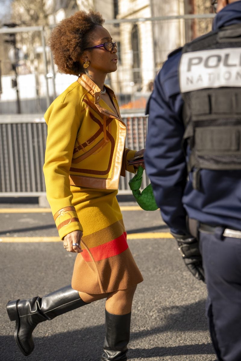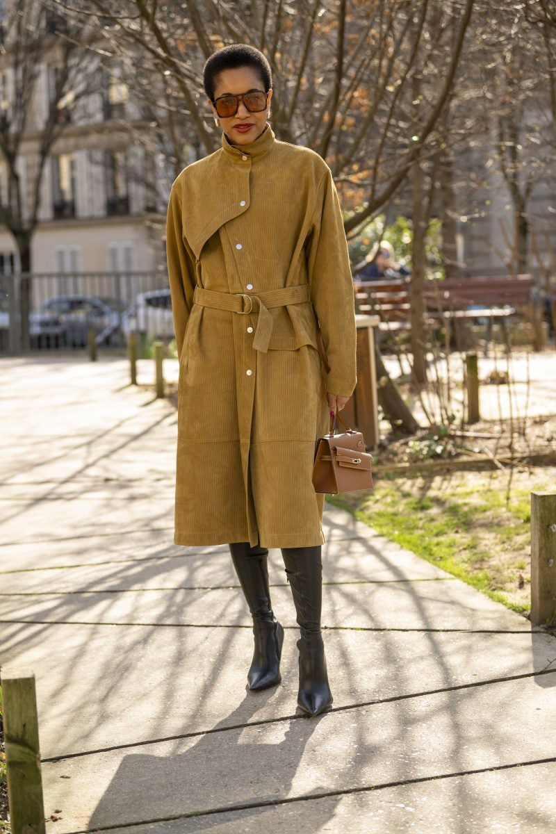 To PFW, stylist extraordinaire and New York native Patti Wilson wore an oversized blazer with a patterned white button-up underneath. A pair of baggy leather jeans, a bucket hat and chunky footwear both in black were also a part of her outfit. Another striking capture: stylist Julia-Sarr Jamois who wore a tan trench coat with a grey mock neck sweater. Both of these outfits showcase the boundaries that those who love personal style can play up while hitting shows.