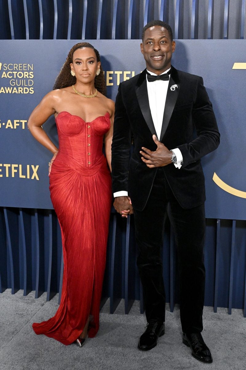 LOS ANGELES, CALIFORNIA – FEBRUARY 24: Ryan Michelle Bathe and Sterling K. Brown attend the 30th Annual Screen Actors Guild Awards at Shrine Auditorium and Expo Hall on February 24, 2024 in Los Angeles, California. (Photo by Axelle/Bauer-Griffin/FilmMagic)
