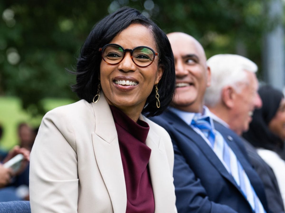 UNITED STATES – JULY 24: Prince George’s County Executive Angela Alsobrooks attends a news conference outside the Addison Road-Seat Pleasant Metro Station to announce “federal funding to support Prince George’s County infrastructure and health needs,” in Capitol Heights, Md., on Monday, July 24, 2023. (Tom Williams/CQ-Roll Call, Inc via Getty Images)