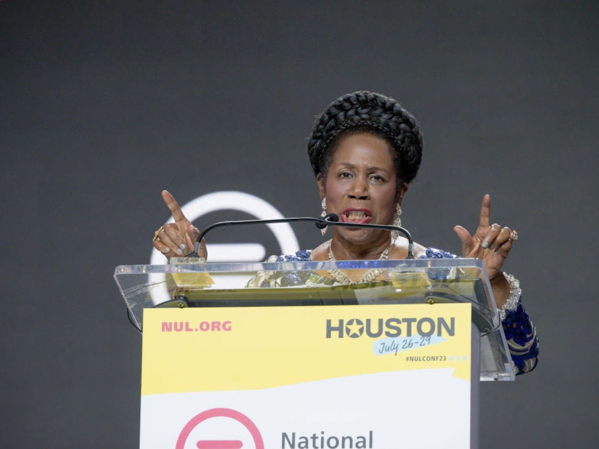 HOUSTON, TEXAS – JULY 28: Sheila Jackson Lee speaks on stage during the Urban League Whitney M. Young Jr. awards gala at George R. Brown Convention Center on July 28, 2023 in Houston, Texas. (Photo by Marcus Ingram/Getty Images)