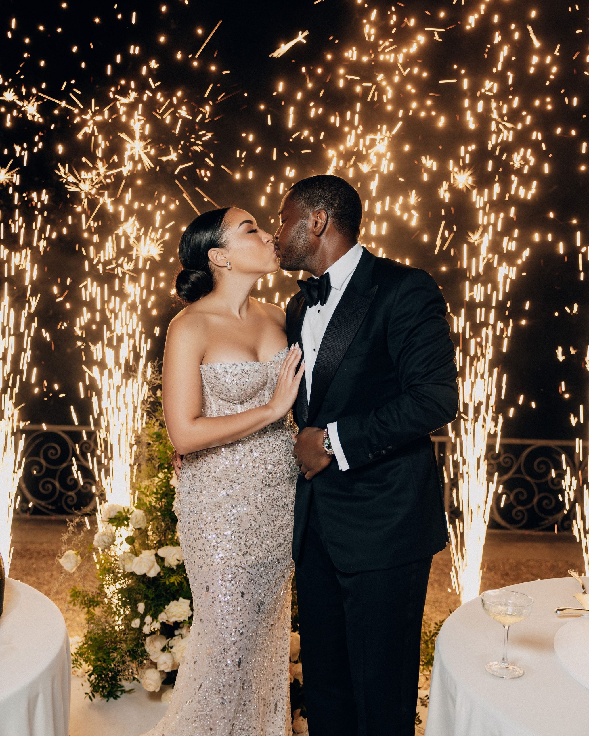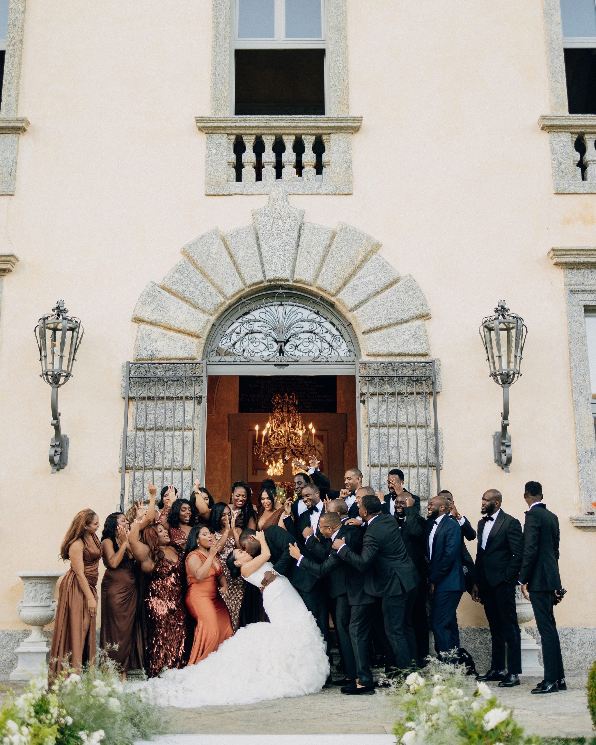With the lake and the foothills of the Alps as their backdrop, the sun shining brightly on them, the couple celebrated their love in an upscale way at the beautiful palazzo Villa Balbiano. After a lot of thoughtful planning, the day came together in an unforgettable way, concluding with a cold spark fireworks display as Amber and Femi marked the next chapter of their love with a kiss.