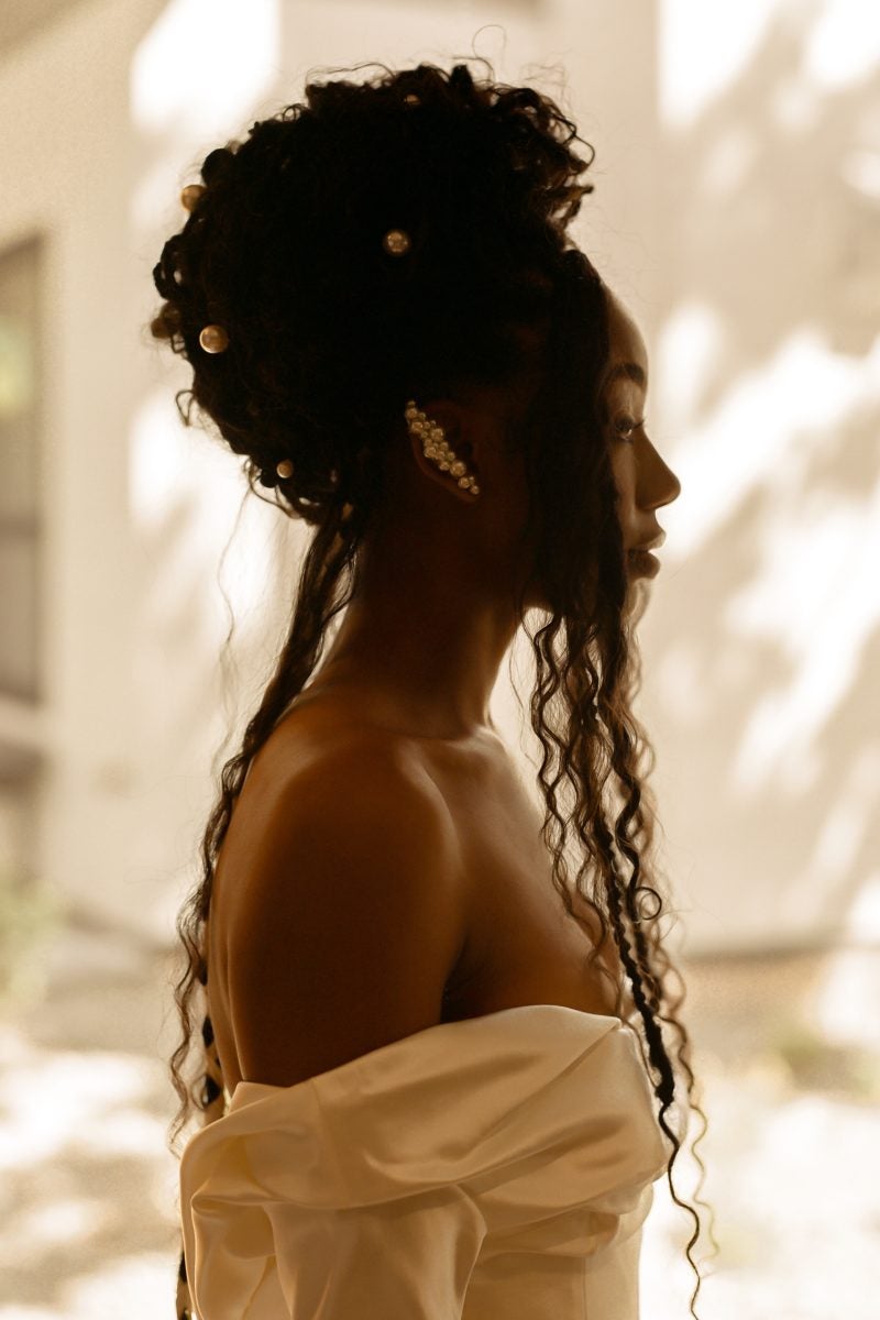 “My favorite moment from the day had to be when we walked into our reception, and the whole room erupted. It felt like a pep rally meets a family reunion, but everyone was dressed like they were going to The Met,” Curtis says. “The energy and love were so pure and just what we needed. Wedding planning and the journey to get to that moment is so layered, and when you stand in that room to witness a union, your presence means something. That moment showed us the village that has held us through these years and will continue to do so in the future. I mean, we had BBQ on the grill, rum punch, and DJ HuneyCut cutting up; it was what we prayed for.”