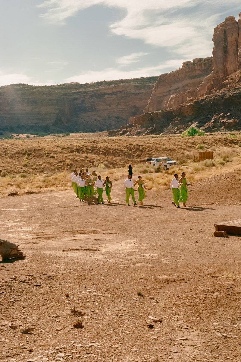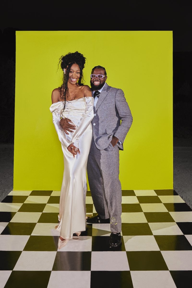 It only made sense that the couple married in grand fashion as well. On August 20, 2023, at The Red Earth Venue in Moab, Utah, a property with full-length windows, the college sweethearts became husband and wife. Surrounded by red rocks and the love of their family and friends, and dressed in distinctive ensembles (including a custom look from Bode for the groom and William Okpo for the wedding party), their love entered its next chapter. And as they approach their one-year anniversary, almost nine years after they met on campus, they’re still delighting in being the leading lady and man in each other’s life story.