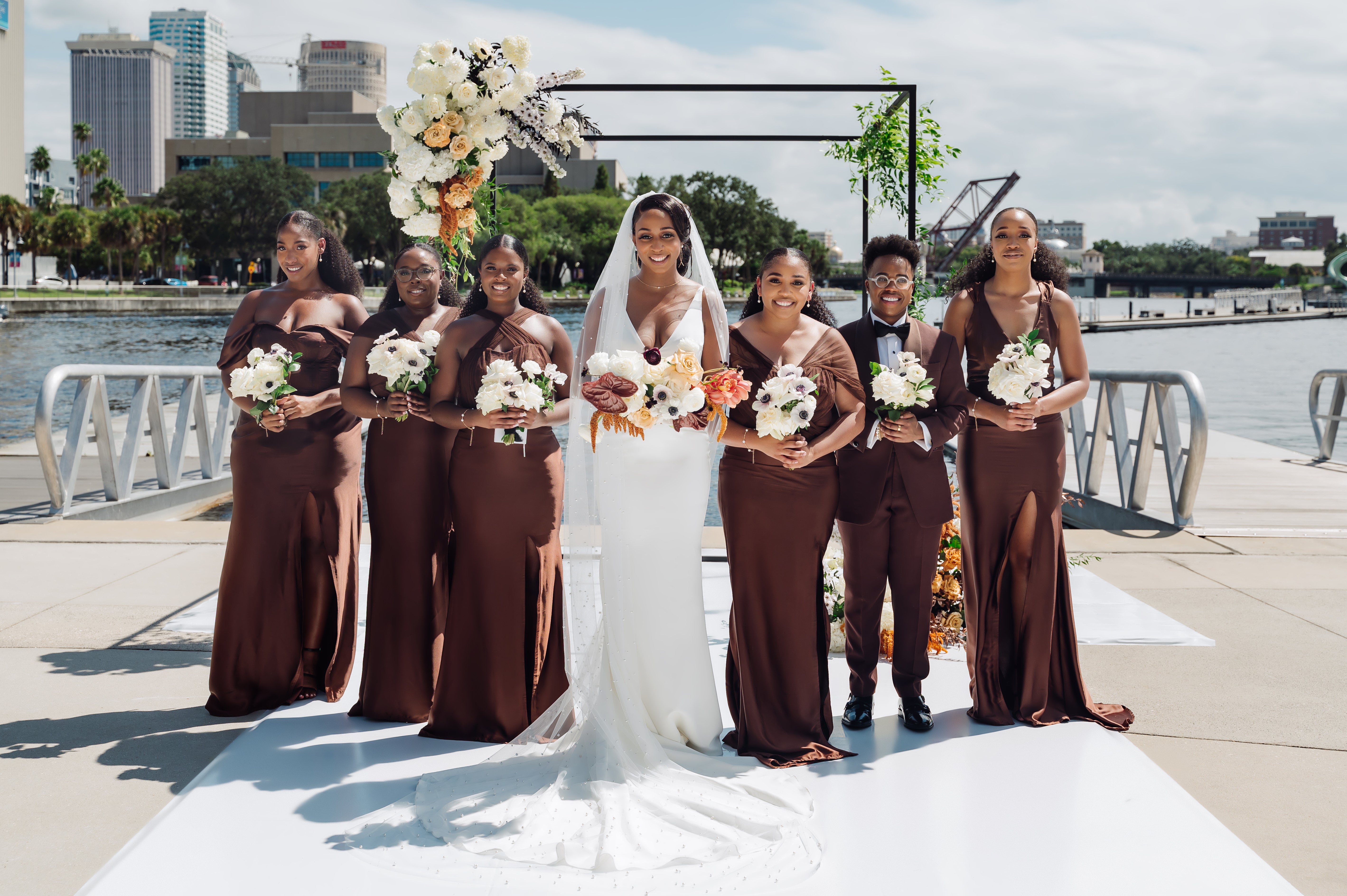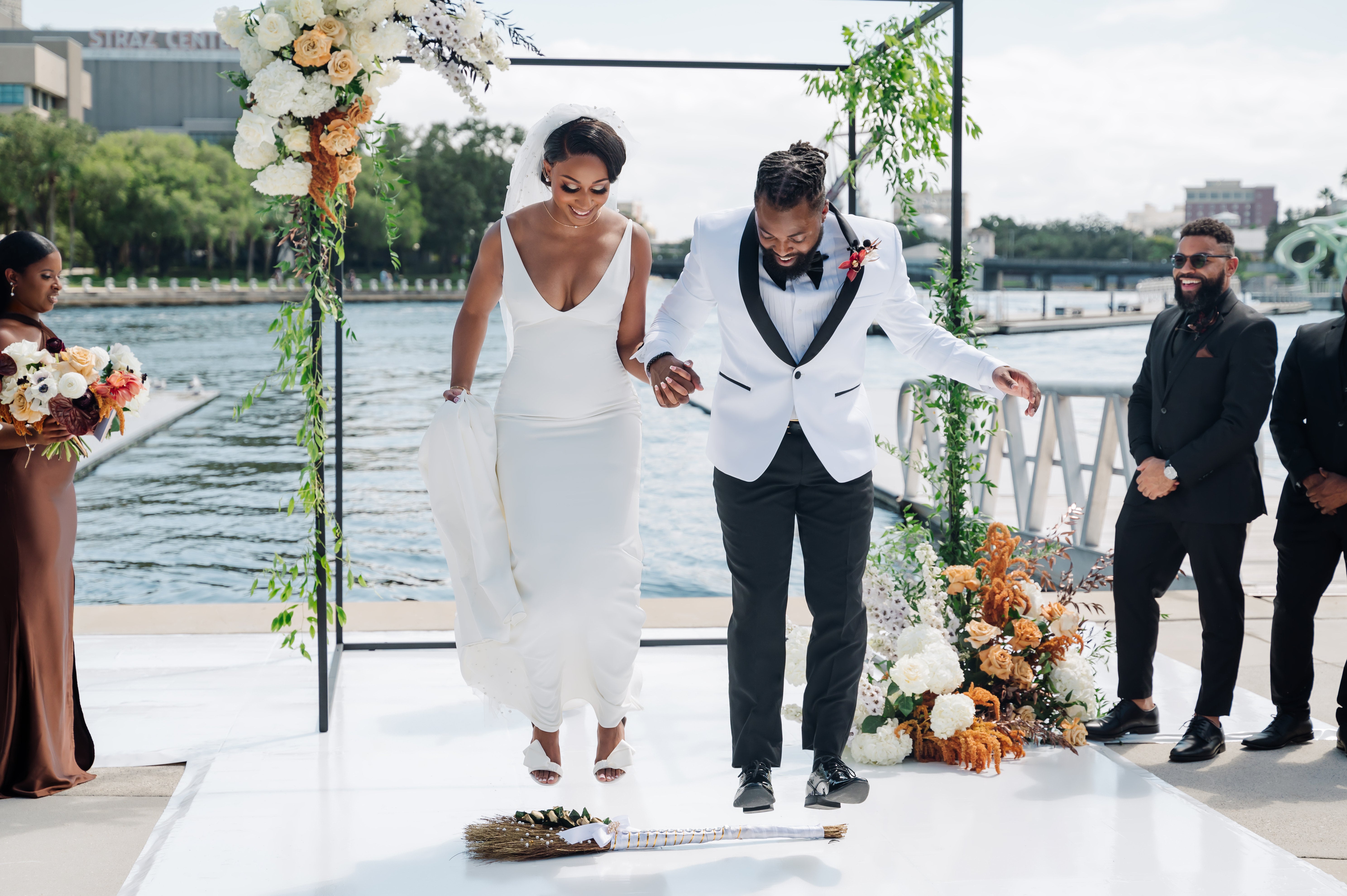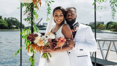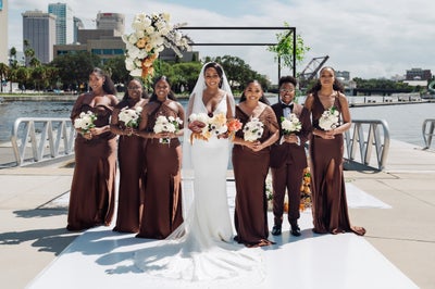 Aside from their love of D’Angelo, Dru Hill, and Florida, they first bonded over their beloved HBCU, FAMU, and knew they wanted elements from their experience there to be reflected in their wedding. “Well, we knew that we had a unique experience of going to an HBCU, and we were actually on campus around the same time, so there was plenty to talk about and reminisce on as far as our HBCU experience,” says Jabare.