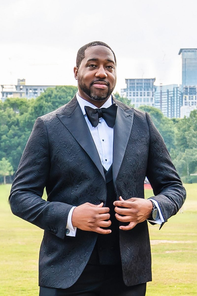 “We both love music and love to dance. Since our wedding was a classy black-tie affair, we decided to surprise our guests with a number of ‘Easter eggs’ throughout the evening,” Elise says. “Ashley McKoy is a trained dancer from the Atlanta Ballet. Once we saw her perform, we knew she would be an excellent fit for our ceremony. We also knew that when people heard the harpist play Etta James’ ‘At Last,’ they would think it was time for the bride’s entrance. They were shocked to see a Black ballerina instead.”