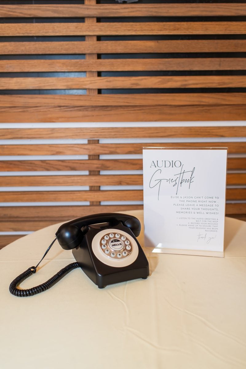 “Our wedding coordinator suggested this and she just happened to have a few of these phones that she rents out for parties,” the bride says. “It was nice to hear our guests in their own words giving us well-wishes on our big day.”