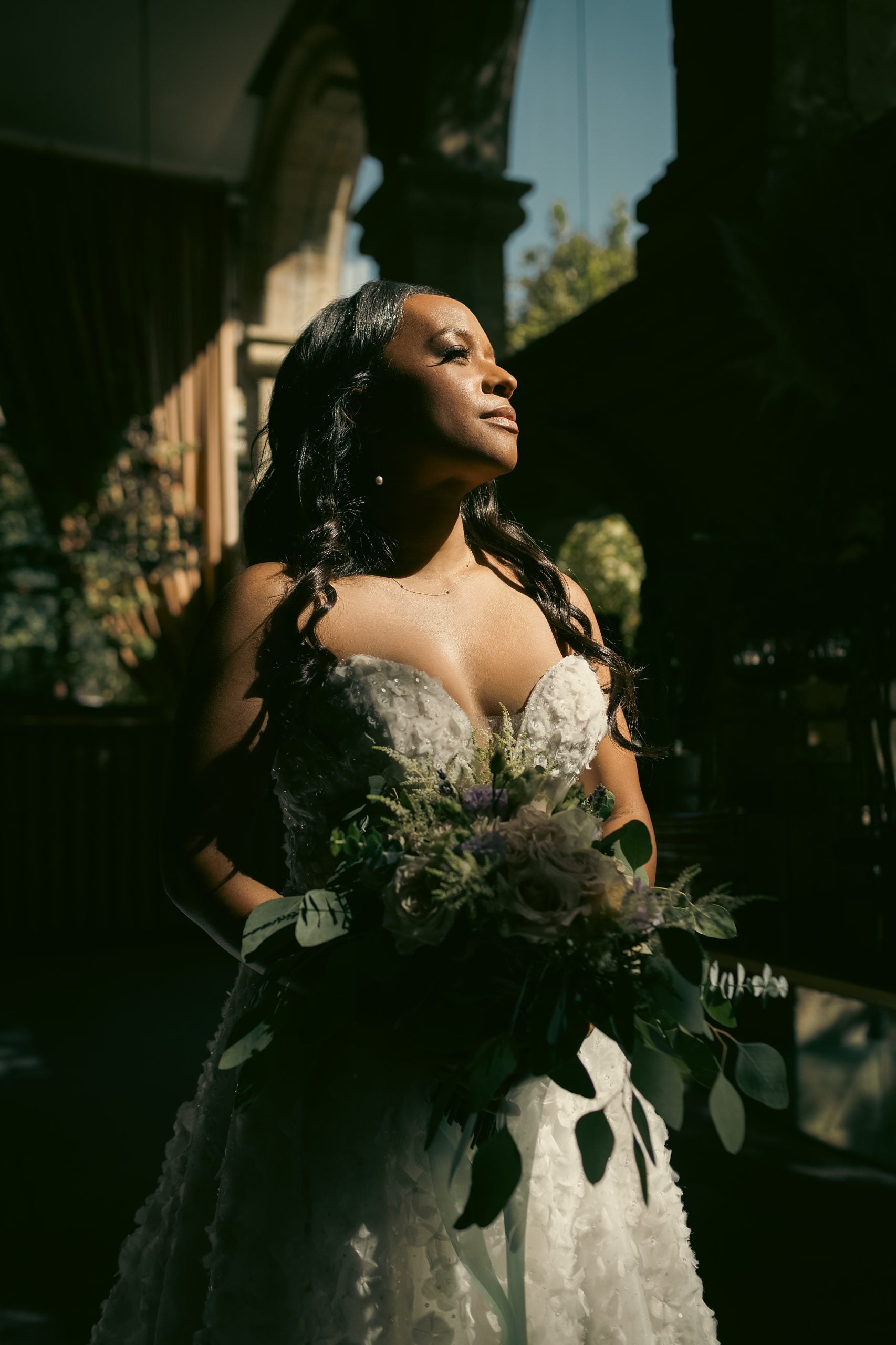 “I went to three shops before I found my perfect dress,” Randall says. “Well actually my Mom picked it out during my dress fitting at Love Couture Bridal in Maryland. The team there was so sweet and made the experience really special. Thank you Taylor! My dress was designed by Enaura and I love that it is all hand-stitched and has the most beautiful appliqués. Initially, it had shoulder straps, but I was able to make customizations that felt more in line with my personal style. I wanted something soft and romantic with a little vavavoom! Thank you Valerie, the amazing seamstress who quickly turned around all the alterations and made the dress fit like a glove.”