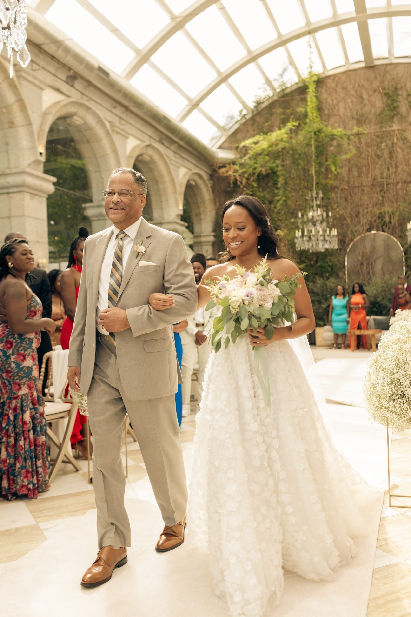 Randall looked like a dream as she made her way down the aisle arm-in-arm with her father.