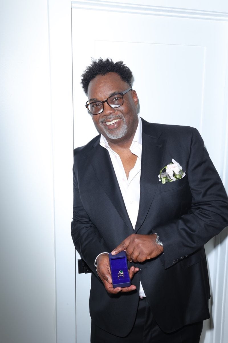 Syreeta, during the reception part of the event, with the legendary Bobby Brown and his wife, Alicia Etheredge-Brown, who were guests. As mentioned, Brown’s 2022 A&E docuseries was directed by Swain and the couple are good friends with the Browns. The singer’s line of all-natural BBQ sauces and spices, Bobby Brown Foods, were made available to help guests enjoy their meal. The famous couple also had an extra special gift ready for the newlyweds. More on that shortly…