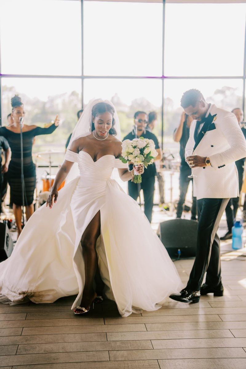 Rain be damned, Natalia, dressed in a Zuhair Murad gown, and her dapper father, made their way down the aisle. “The rain turned out to be a guest of honor at our wedding,” Antwain says, “creating a picturesque atmosphere that we couldn’t have paid to recreate.”