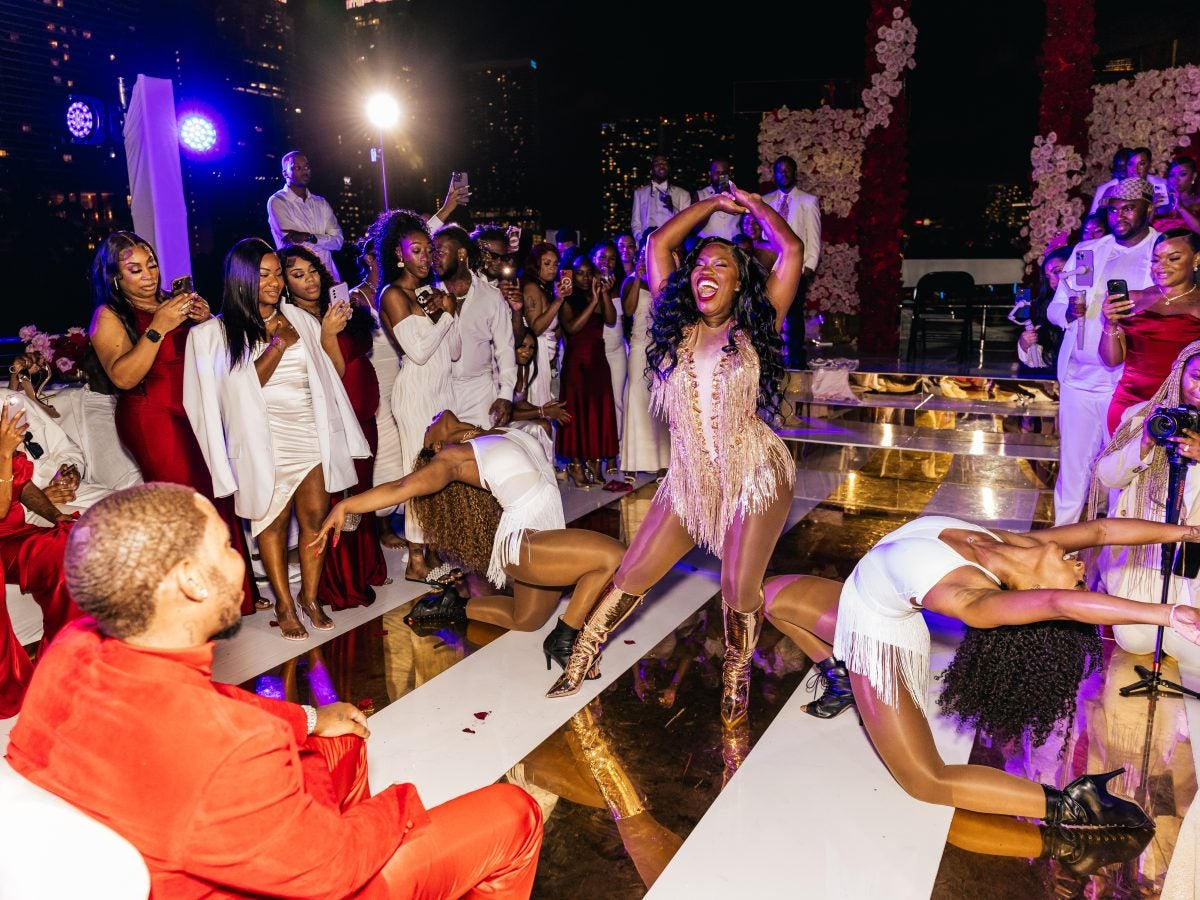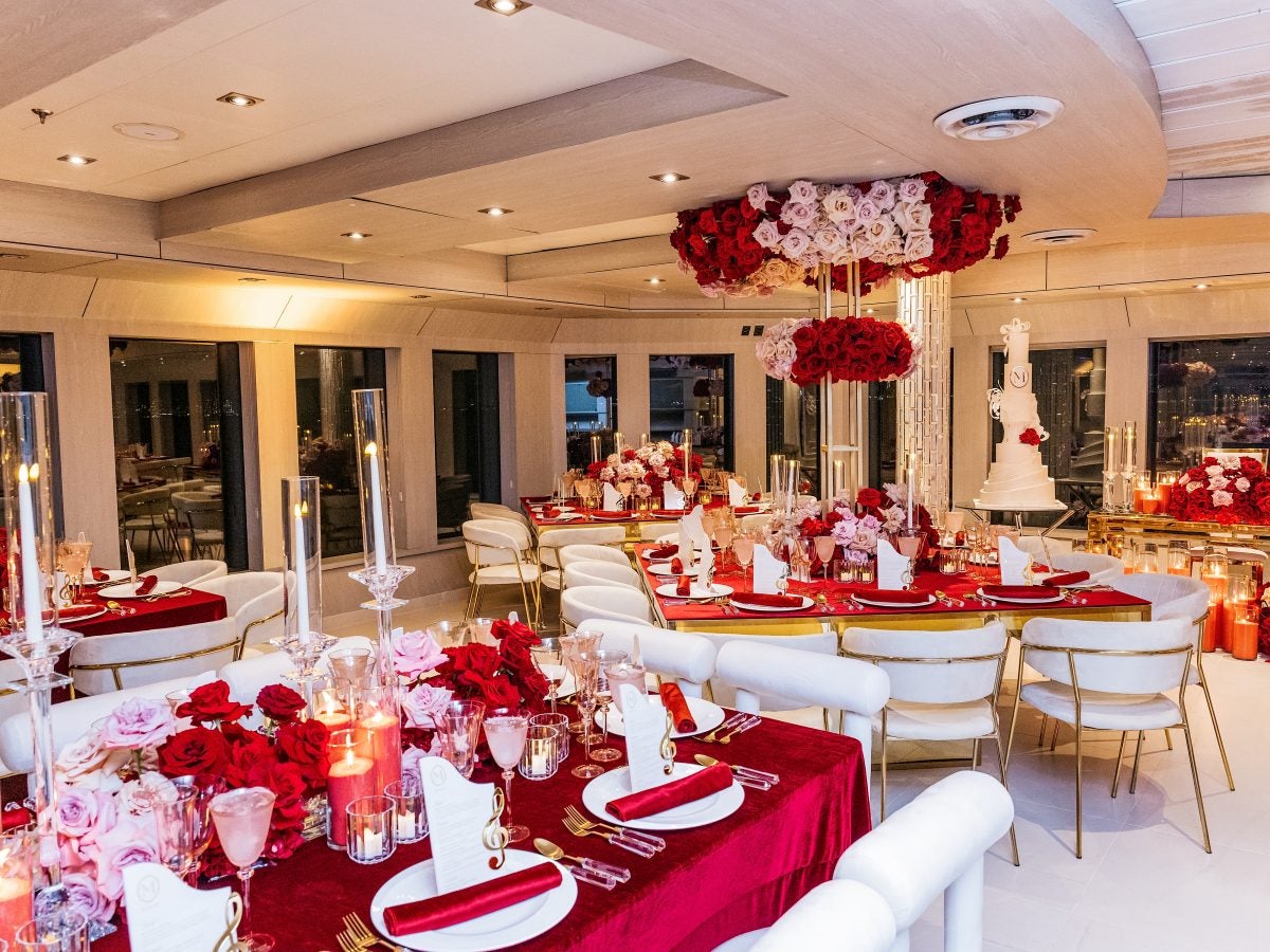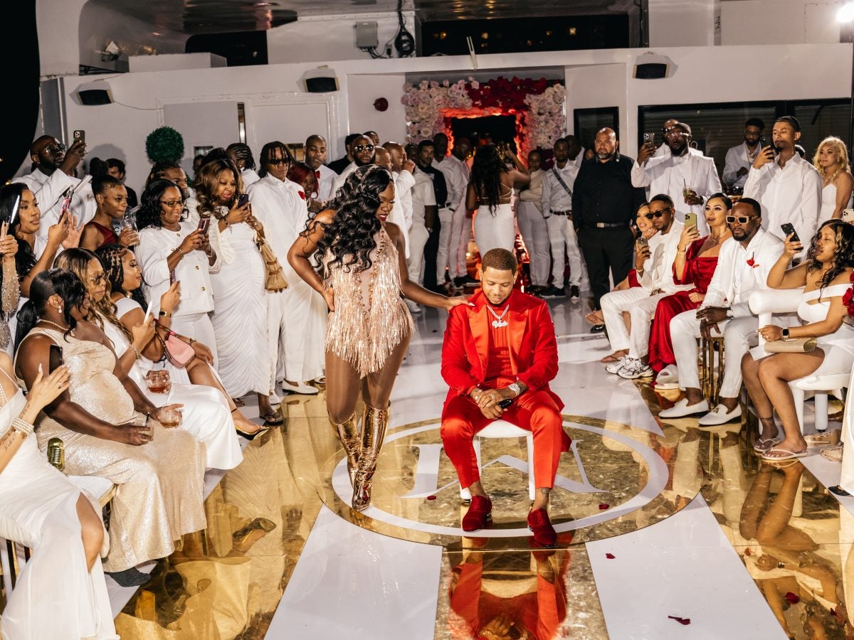 From there, the couple planned the ultimate celebration, opting to tie the knot on the day of love, Feb. 14, 2024, on a mega yacht in Miami that they decked out in red and white florals and matching decor. The couple exchanged vows in front of some high-profile guests, all dressed in white, on the waters of Magic City. “We go all out for our birthdays, vacations, our friends, why not go all the way and do it bigfor our wedding day?” Shanice asks.