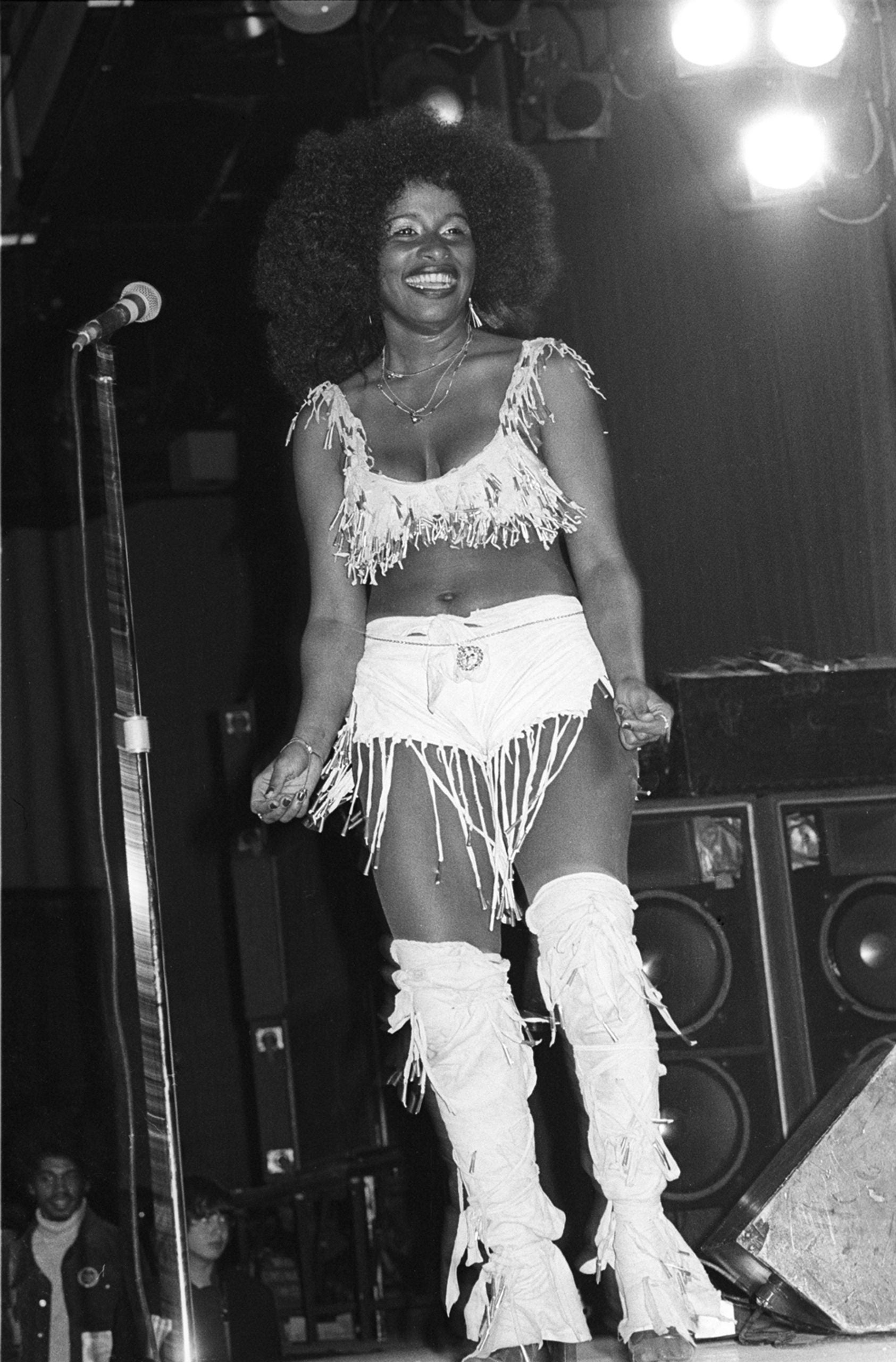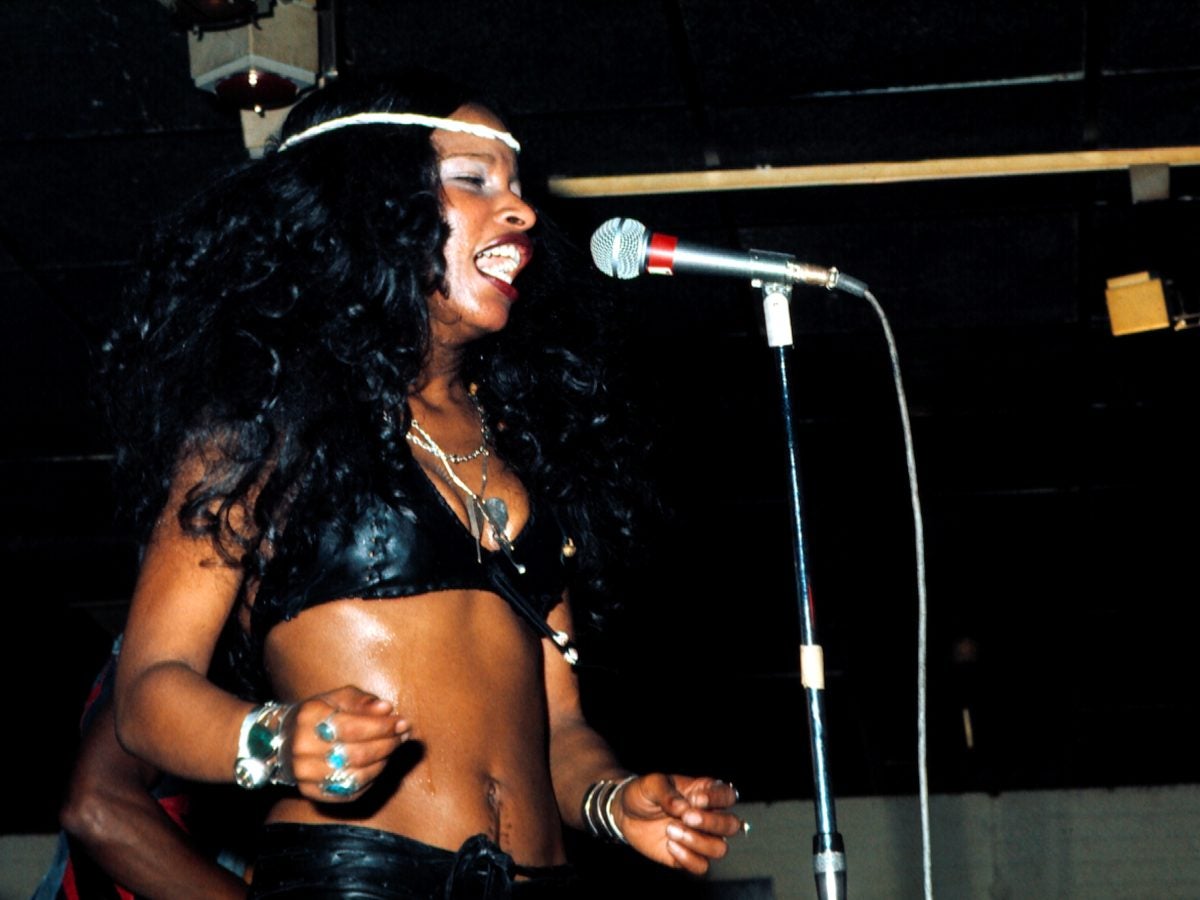 Musician Chaka Khan, of the group Rufus, performs at the Felt Forum, New York, New York, April 10, 1976. (Photo by Allan Tannenbaum/Getty Images)