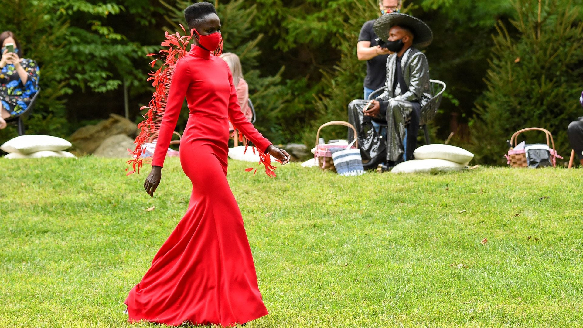 Do you remember when Siriano presented at his breathtaking Connecticut home amid the pandemic? We do. His suburban backyard became a runway. Gowns flowed beautifully on the grass and the show is imprinted in our minds forever.