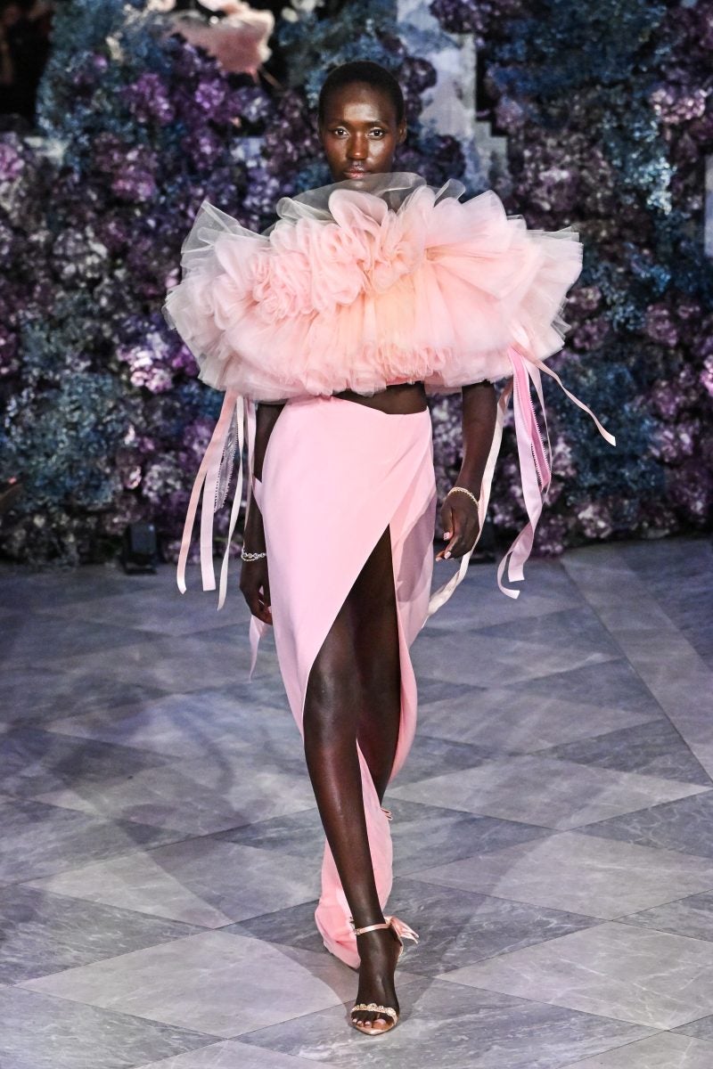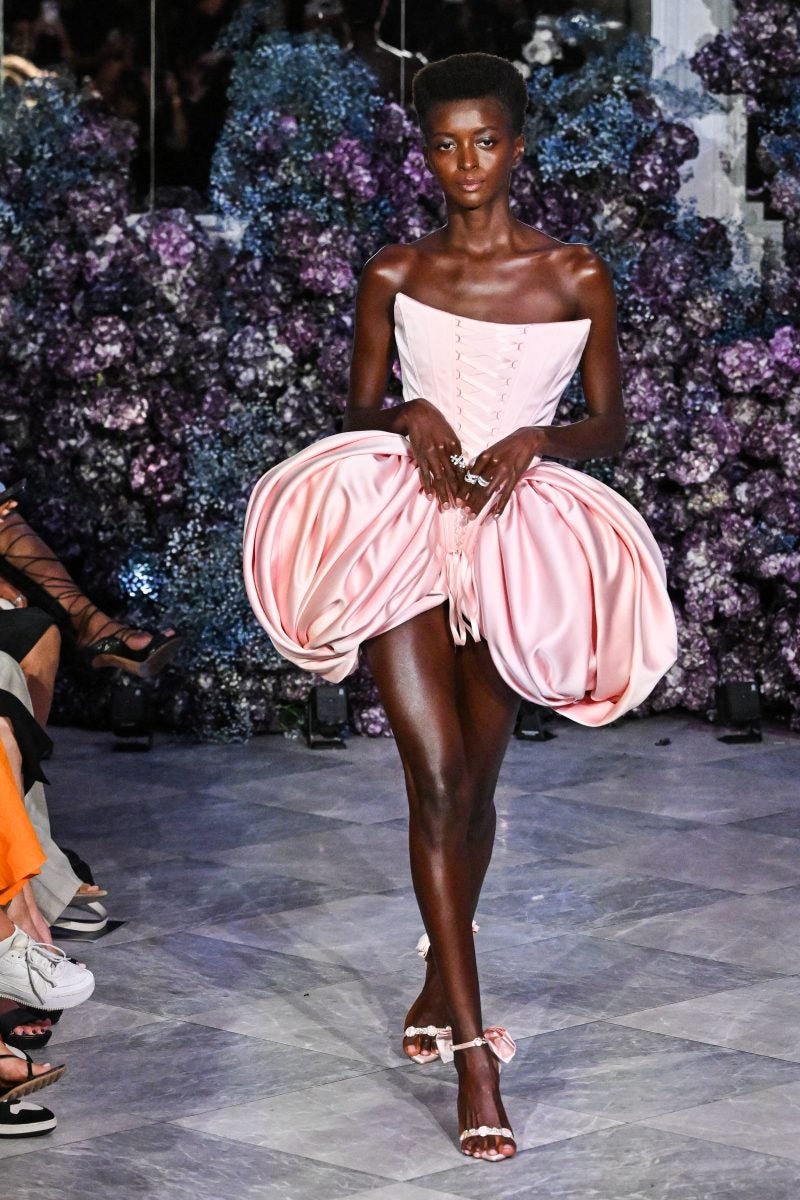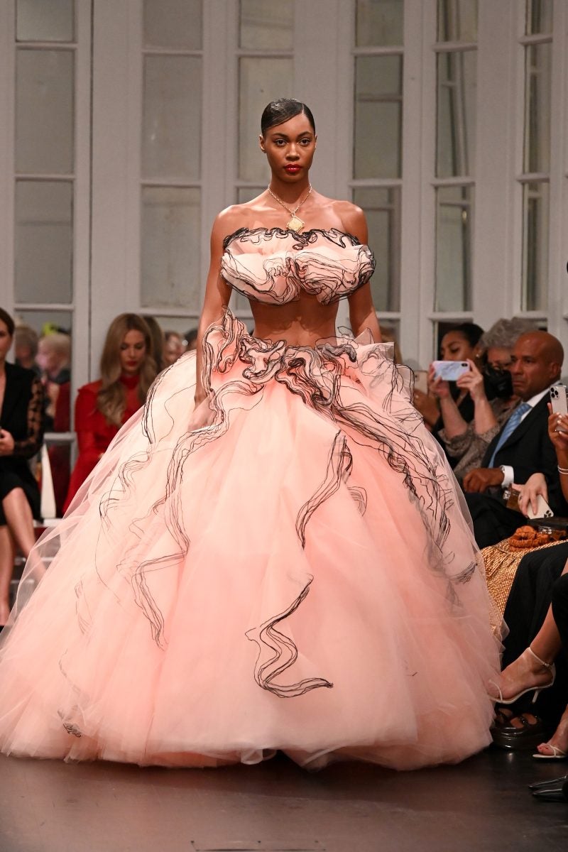 Design-wise Christian Siriano’s presentations are eloquent displays of radical dreaming. Each one is nearly an ode to his first presentation in 2008–he gets more creative with each show. For instance, his Spring/Summer 2024 which was also his 15th anniversary pulled largely from the balletcore as previously mentioned so the hue baby pink was utilized in picturesque ways.