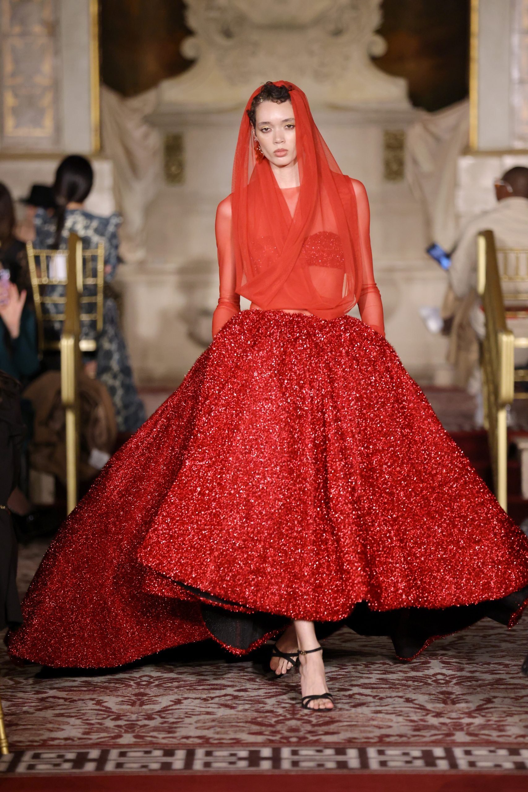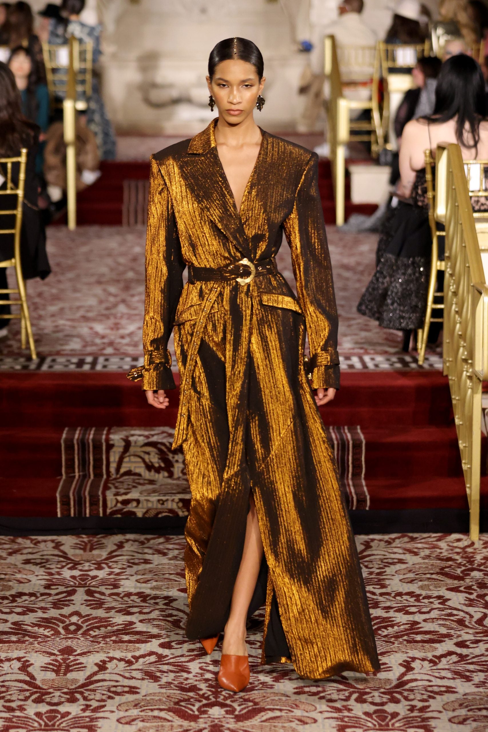NEW YORK, NEW YORK – FEBRUARY 08: A model walks the runway during the Christian Siriano Fall/Winter 2024 Fashion Show at The Plaza Hotel on February 08, 2024 in New York City. (Photo by JP Yim/Getty Images for Christian Siriano)