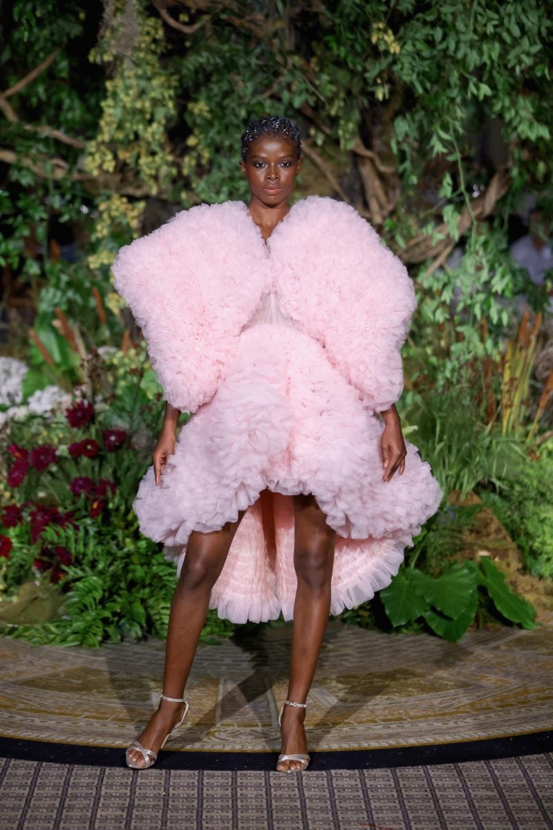 Readers would be pleased to know that one suit came down the runway in a gorgeous light pink tone. One shoulder of the suit was nearly trimmed off completely–this made for a compelling case on workwear. Elsewhere another baby pink mini dress created with tulle was equally compelling–arguably this was one of the most moving looks of the entire presentation. Wholly, Siriano brought showgoers and his beloved fans inside his immersive imagination which appears to be limitless.