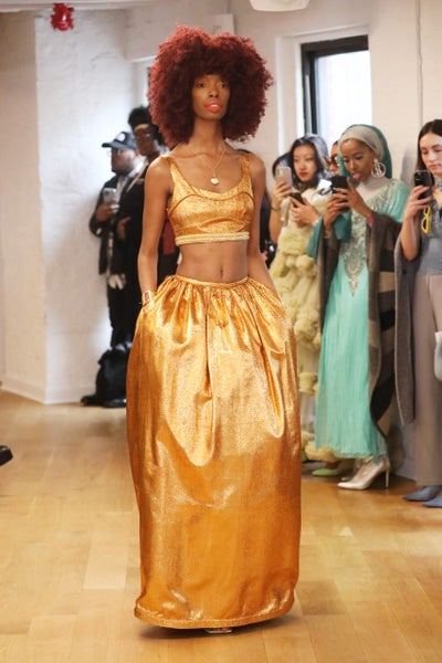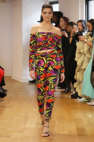 Following last season’s collection, mother-daughter duo Najla and Cynthia Burt’s latest collection evoked a tropical feel. The space was in the heart of Manhattan, and as guests rolled in, from influencers to editors, everyone was excited to see what was in store for the duo this time. As an upbeat island mix started playing, models glided through the runway with a certain poise that spoke of the word “luxury.” Phones were raised immediately as the first model in a black and green long one-shoulder dress started the show, and progressively more tropical prints came onto the runway. Off-the-shoulder and one-shoulder silhouettes were consistent throughout the show as well as florals, bold colors, and prints. Najla grew up in Florida, which is big on tropical prints, so it makes perfect sense for them to tap into the past with the collection.