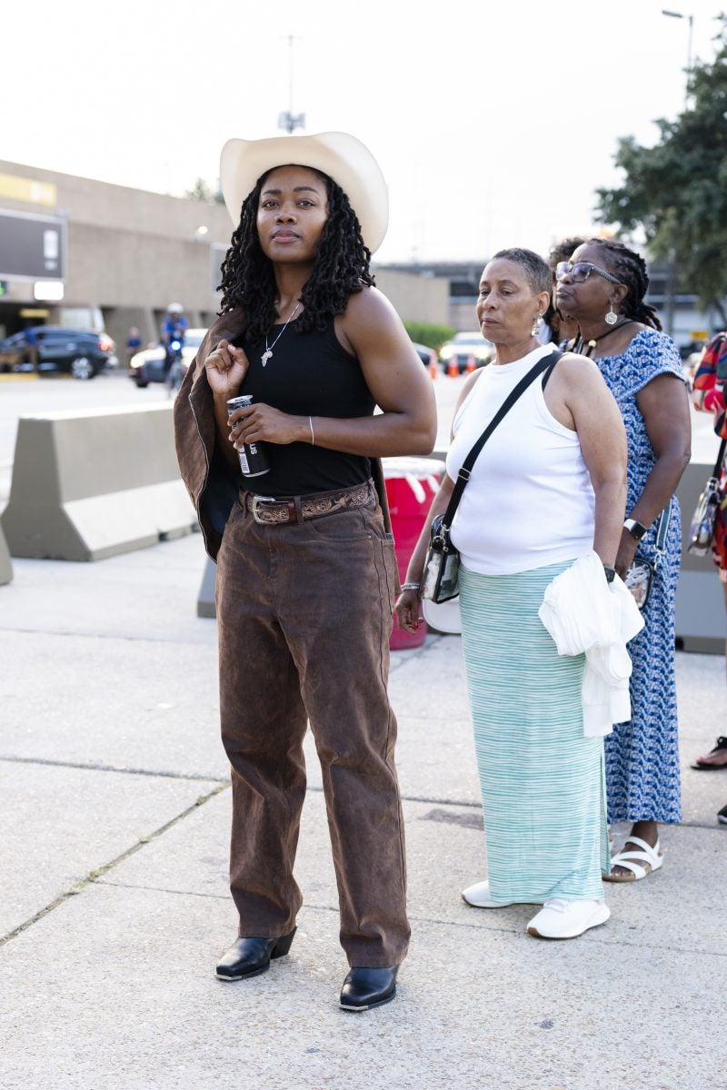 Day one at the Convention Center in New Orleans set the tone, and the fits did not disappoint. Soft floral prints, distressed denim shorts, and cowboy hats ruled the scene. This year’s ESSENCE Festival of Culture brought out crowds dressed in bold colors and vibrant prints, reminding everyone that Black joy and fashion always go hand in hand.