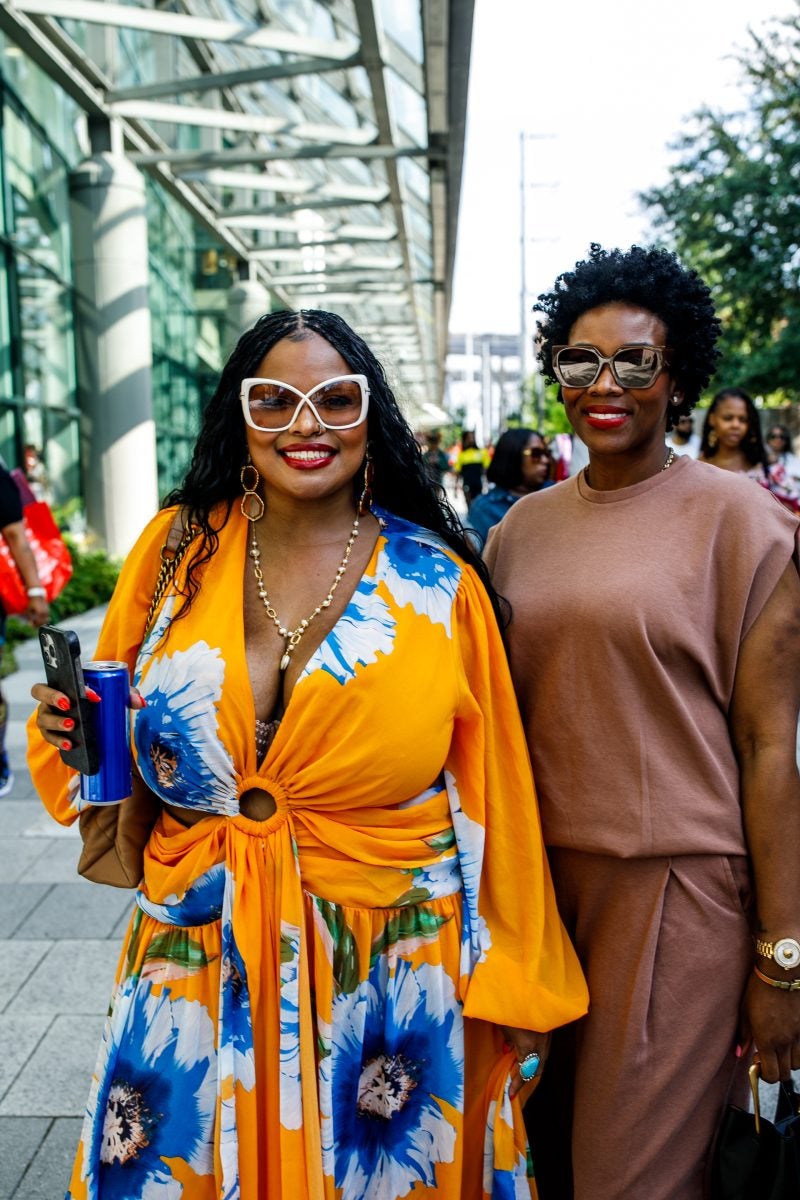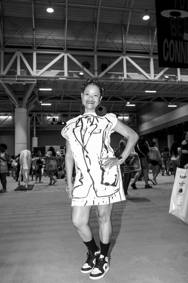 Between shopping sprees at SOKO MRKT, catching their favorite artist’s set at the Superdome, or soaking up gems at the panels, festivalgoers turned the Convention Center into a runway for all ages. Crews of friends showed out in curve-hugging jumpsuits, flowy maxi dresses, bold earrings, and vintage concert tees honoring the late greats. Some danced their way through the day in sharp blazers and chic matching sets, while others kept it sporty in fitted caps, cropped tanks, and sneakers built for festival comfort. The accessories game was on point too: oversized hoops, artsy dangle earrings, and even heart-shaped purses added that extra dose of personality to the outfits spotted in the crowd.