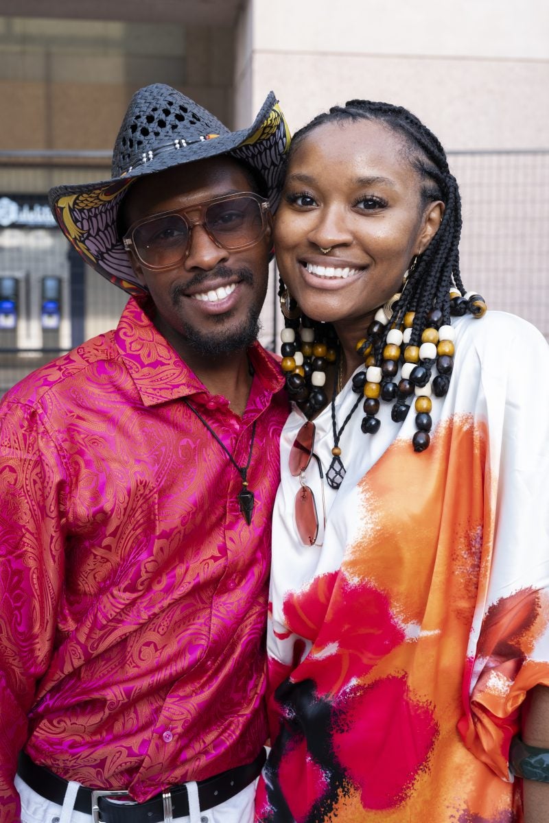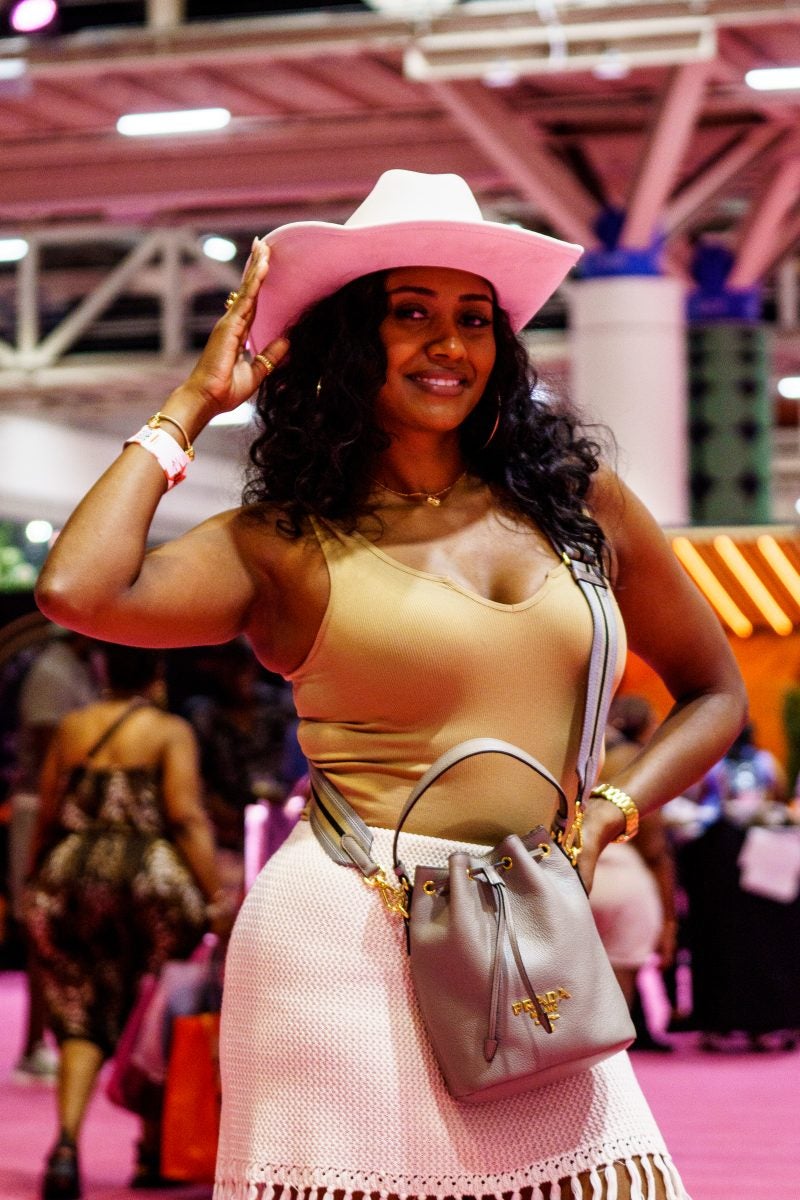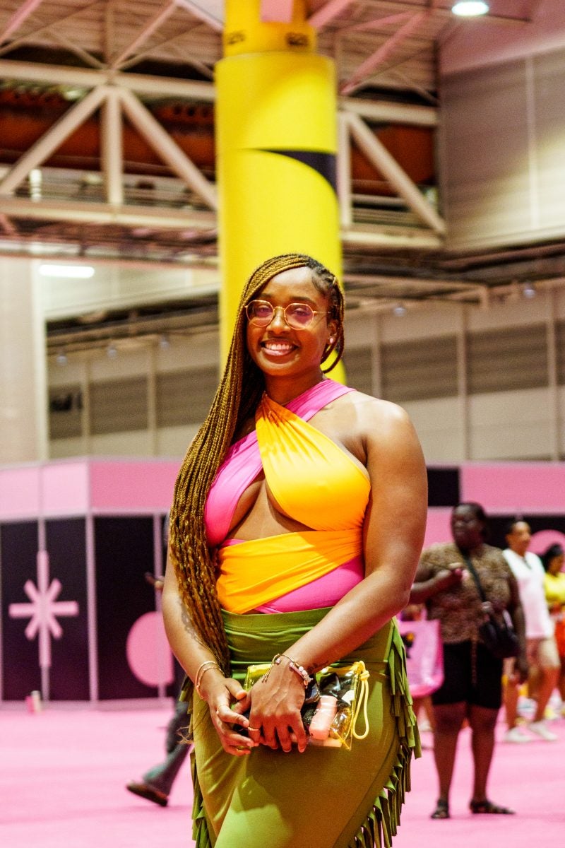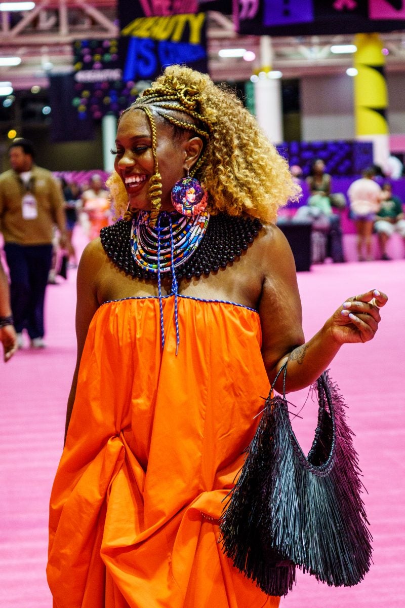 One’s modus operandi when dressing for the ESSENCE Festival of Culture is to be self-expressive. For the second day of EFOC, attendees did just that. To beat the heat, some attendees chose lightweight dresses as they hopped around BeautyCon and other areas within the Convention Center. Others opted for trending silhouettes, including the bubble hem, or hues such as vibrant summer tones, including magenta. Some guests took festival fashion and flipped it on its head. Those risk takers arrived in eccentric orange dresses or button-up tops with head-turning prints emblazoned on them to further explore their personal style.