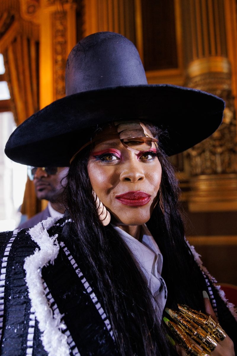 PARIS, FRANCE – OCTOBER 03: (EDITORIAL USE ONLY – For Non-Editorial use please seek approval from Fashion House) Erykah Badu poses after the Thom Browne Womenswear Spring/Summer 2023 show as part of Paris Fashion Week at Palais Garnier on October 03, 2022 in Paris, France. (Photo by Richard Bord/Getty Images)