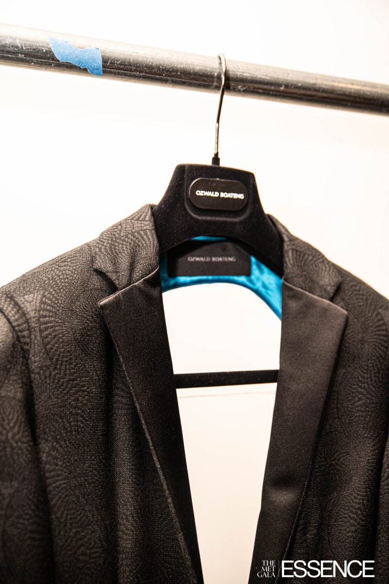 Starr made her Met Gala debut in a custom look designed by British-Ghanaian Ozwald Boateng, a master tailor whose craftsmanship and creative use of color redefined the menswear paradigm. In 1995, Boateng was the first Black tailor to open an eponymous storefront on Savile Row in London. Wearing a tuxedo dress with tribal mohair and a black satin label, Starr turned heads on the blue carpet with a deep v-neck, high leg slit, and open back. The dress mimicked a trench coat silhouette and was lined with blue-turquoise fabric on the interior. The artist also wore an eloquent necklace by Repossi.