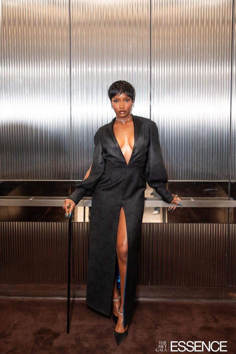 Whether she’s performing at Paris Fashion Week or embracing a new persona in a music video, Starr has never been one to shy away from experimenting with her hair, nails, and various modes of self-expression. The dress code for the event: “Tailored for You,” an ode to the Metropolitan Museum Costume Institute’s upcoming exhibition on Black Dandyism—required Starr and her stylist Karen Binns to expand her universe even further. “The theme itself made me think outside of the box because I wanted to do a mix of modern and old,” she said. “But I love a good challenge and owned it.”