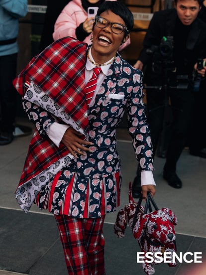 And in honor of Lover’s Day, many show attendees and street style stars channeled that through their dress. Red was everywhere. From Red bags (like the Saint Laurent Love Heart Chain Bag) and coats to Thom Browne plaid. Love was certainly in the air.