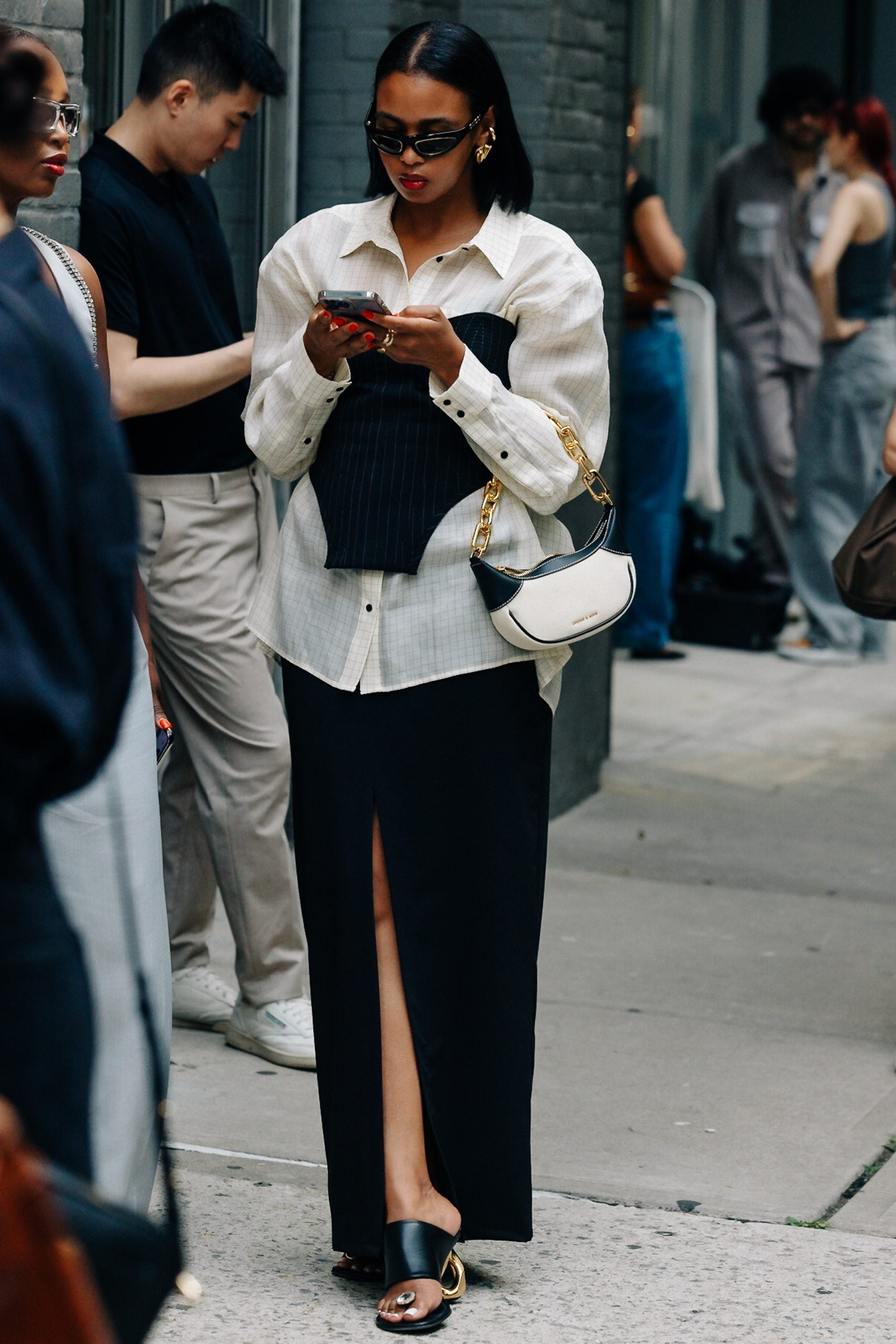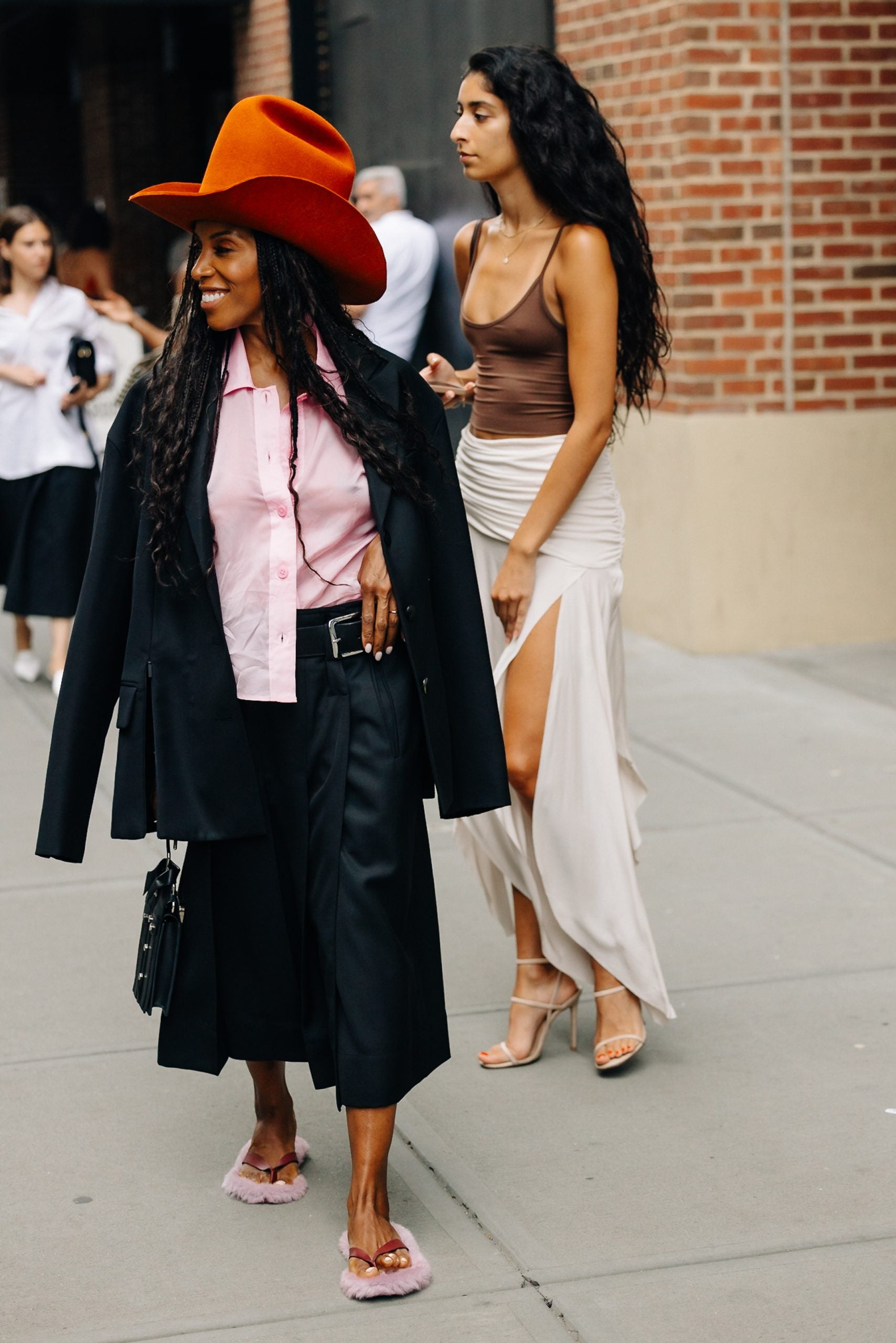 With the weather constantly changing, showgoers opted for comfortable, lengthy skirts and corset-esque tops. Some opted for simplicity with a white tank and a sleek bottom like a pencil skirt. Naturally, there were some peacocks who decided to be bold. One of these fantastic individuals donned a pair of balloon-inspired trousers in orange and a matching balloon sleeve top à la Christopher John Rogers. Below you’ll find some head-turning looks that can serve as inspiration for you for the months ahead.
