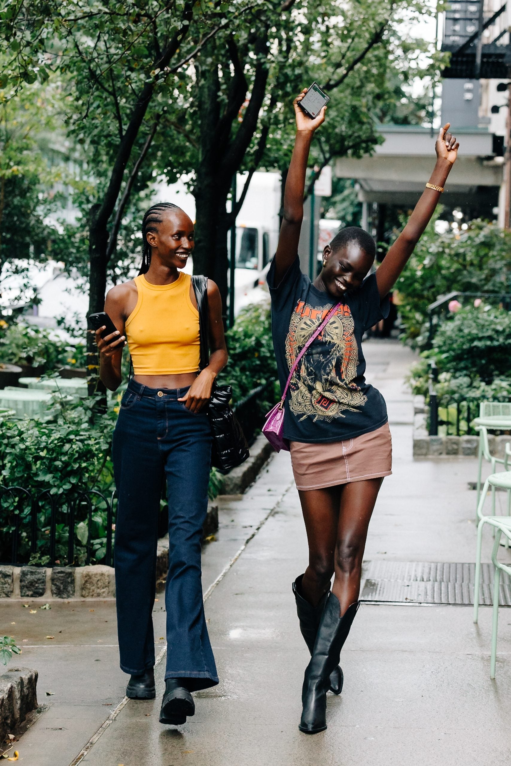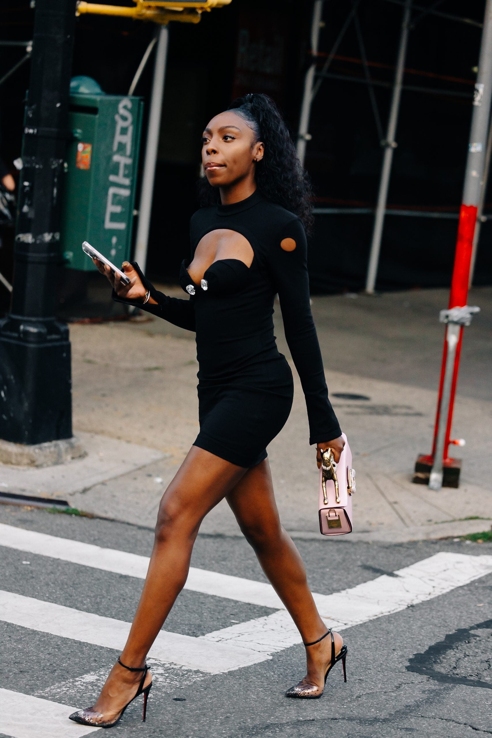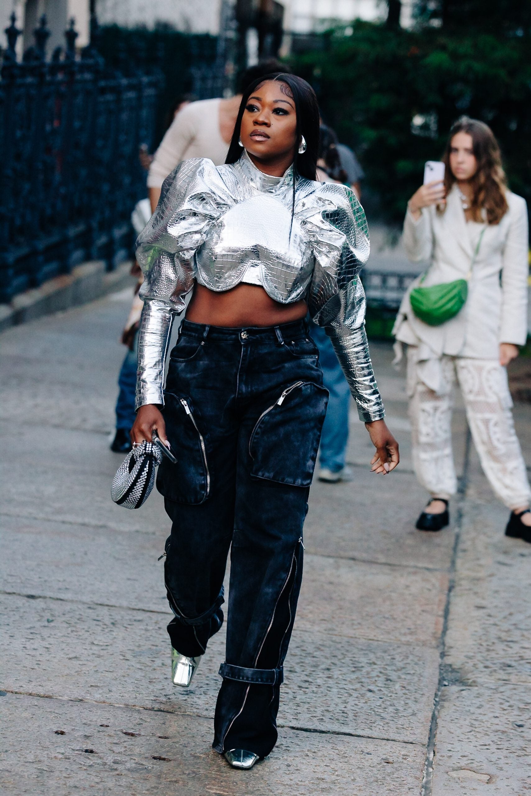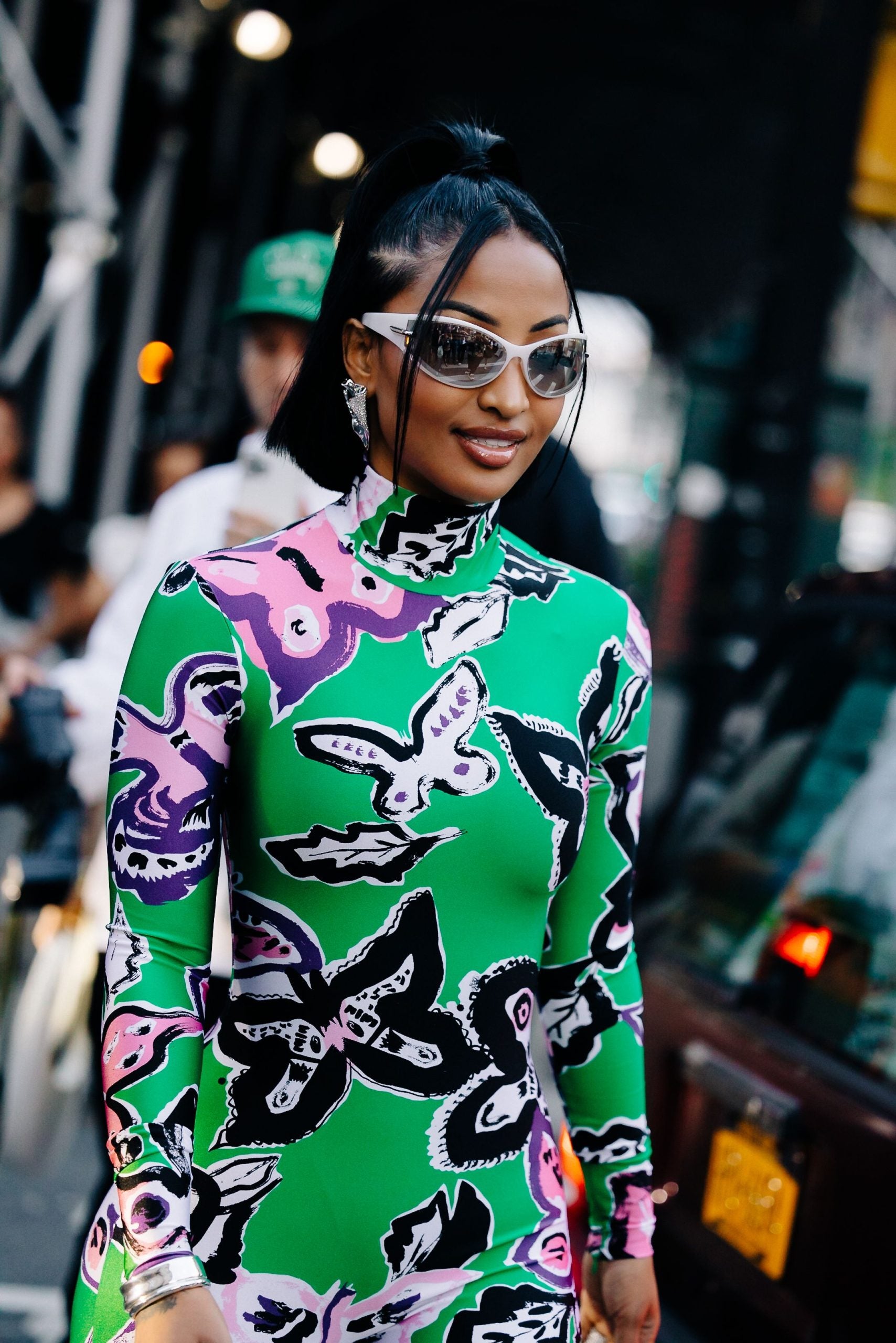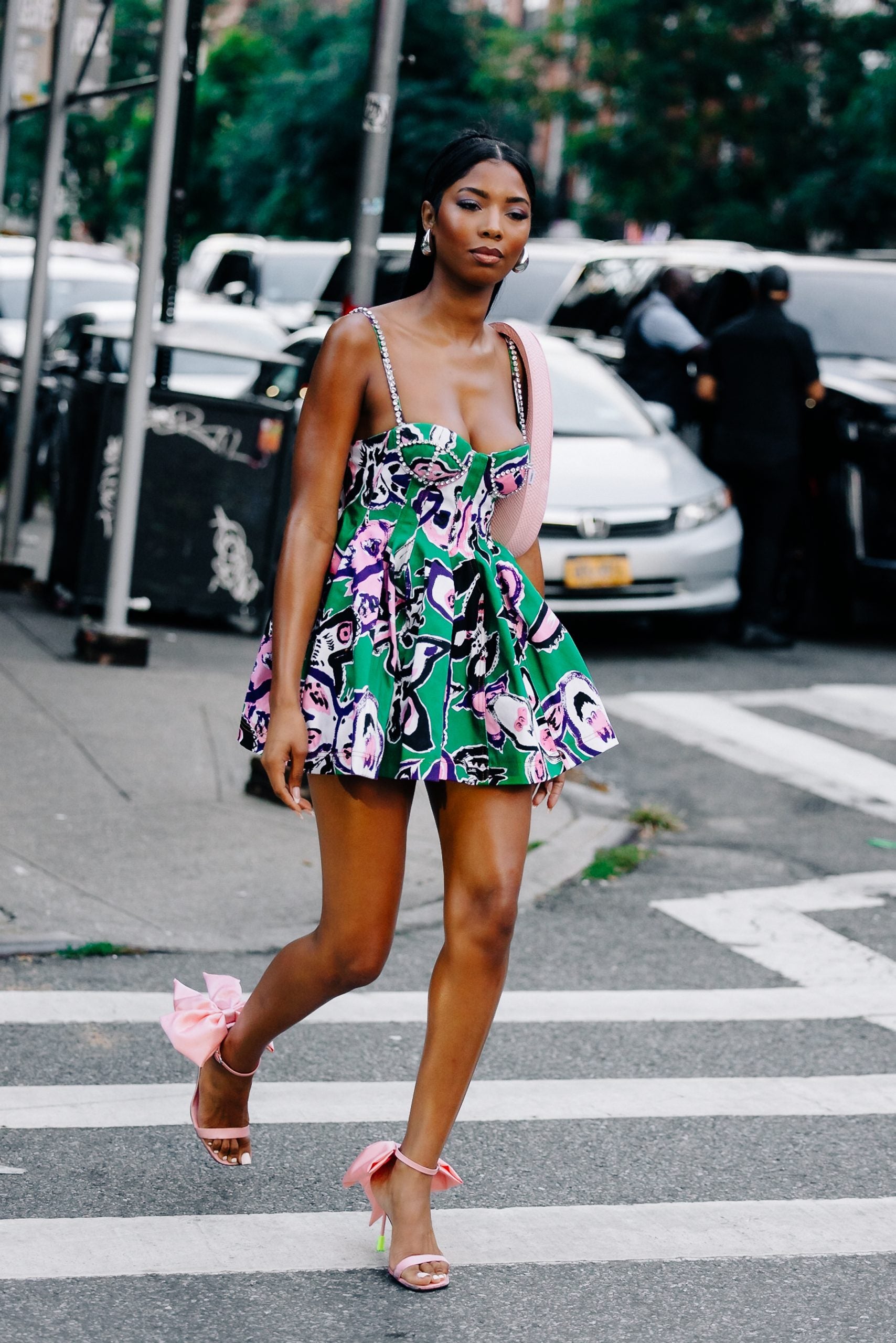 Sunday proved to be a tolerable weather day, so fashion insiders threw on pumps, mini dresses in sleek hues, head-turning denim separates and bold bodysuits. Take, for instance, Marsai Martin, who stunned in a bright yellow dress emblazoned with silver jewels–presumably gearing up for Area’s show. Karreuche Tran served up a gorgeous ‘fit in a houndstooth pattern that we absolutely loved. Another memorable ensemble that we enjoyed was a highlighter green tailored suit that featured black detailing. Keep scrolling to check out more killer street style looks.