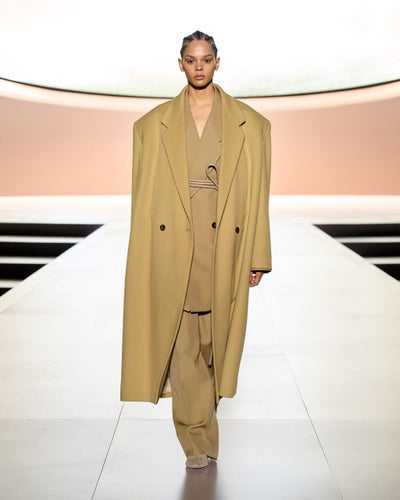 So often, runway shows and presentations become grander than the clothes themselves, which comes from brands either not fully maturing or simply not knowing themselves. One of the great things about this being Lorenzo’s first runway show is that it thoroughly reads FOG. It was a complete, fully realized interpretation of the brand’s ethos. From the soundtrack (which expansively covered the FOG universe, from Max Richter’s cinematic “On the Nature of Daylight” to Bone Thugs-N-Harmony’s “Thug Luv”), the Kubrick-esque stage design with stark white and a led oculus projecting the sky above (an ode to the brand’s spiritual essence) and a color palette of cremes, greys, blacks, and camel.