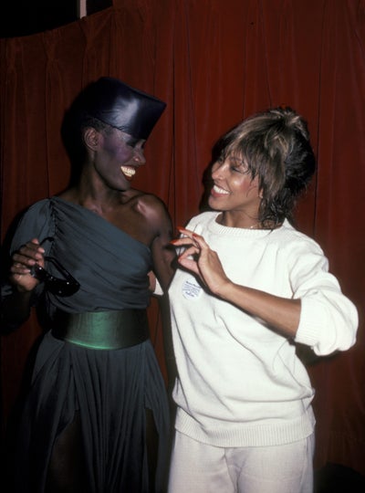 Grace Jones and Tina Turner during Tina Turner Opening – May 7, 1981 at The Ritz in New York City, New York, United States. (Photo by Ron Galella/Ron Galella Collection via Getty Images)