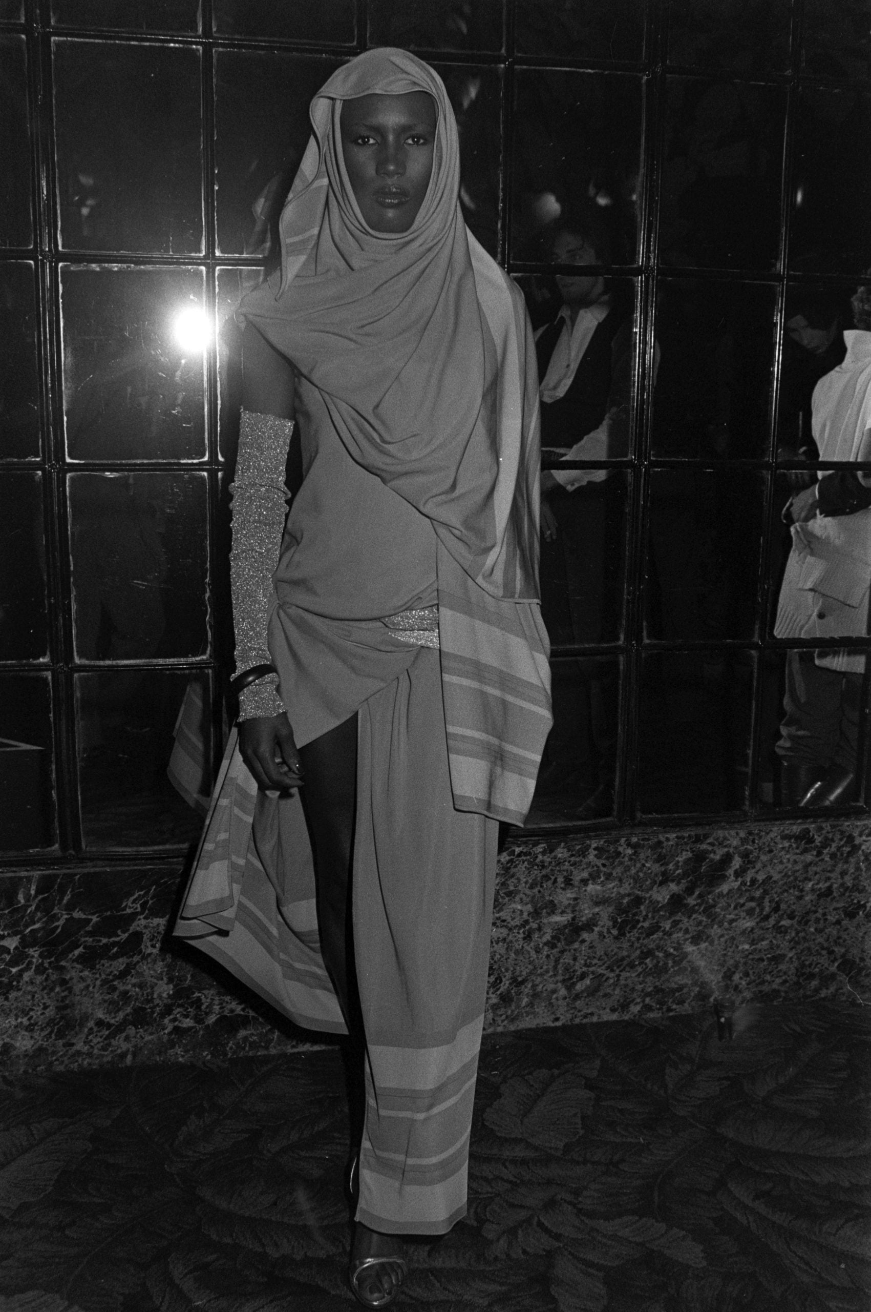1076 Model Grace Jones in Emmanuelle Khanh Autumn/Winter 1976-1977 Fashion Show