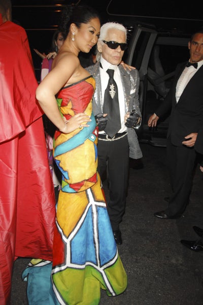 NEW YORK CITY, NY – MAY 5: Kimora Lee Simmons and Karl Lagerfeld attend Nina Ricci after party for Met Ball hosted by Olivier Theyskens and Lauren Santo Domingo at Philippe on May 5, 2008 in New York City. (Photo by DAVID X PRUTTING/Patrick McMullan via Getty Images)