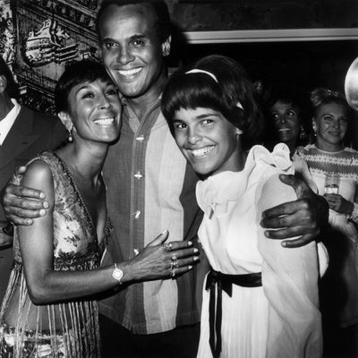 August 1969: American actor and singer Harry Belafonte with wife, dancer Julie Robinson, and oldest daughter, Shari, at the ‘Lena Horne-Harry Belafonte’ opening at Caesar’s Palace in Las Vegas, Nevada. (Photo by Frank Edwards/Fotos International/Getty Images)