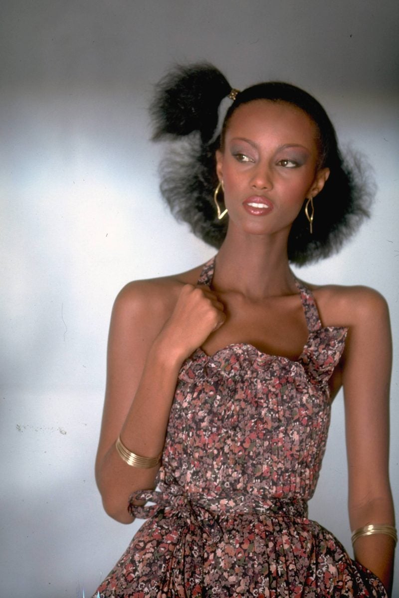 Model Iman sporting sectioned coif for Spring 1977. (Photo by Conde Nast/Conde Nast via Getty Images)